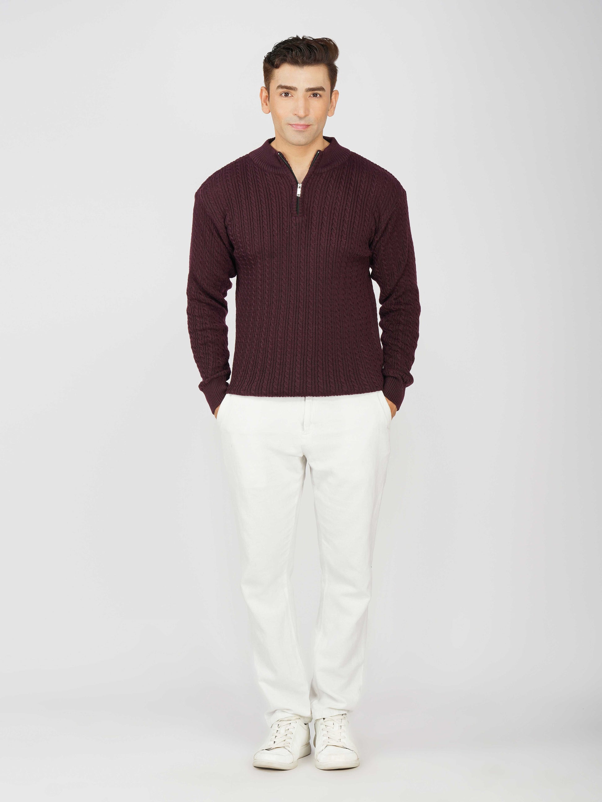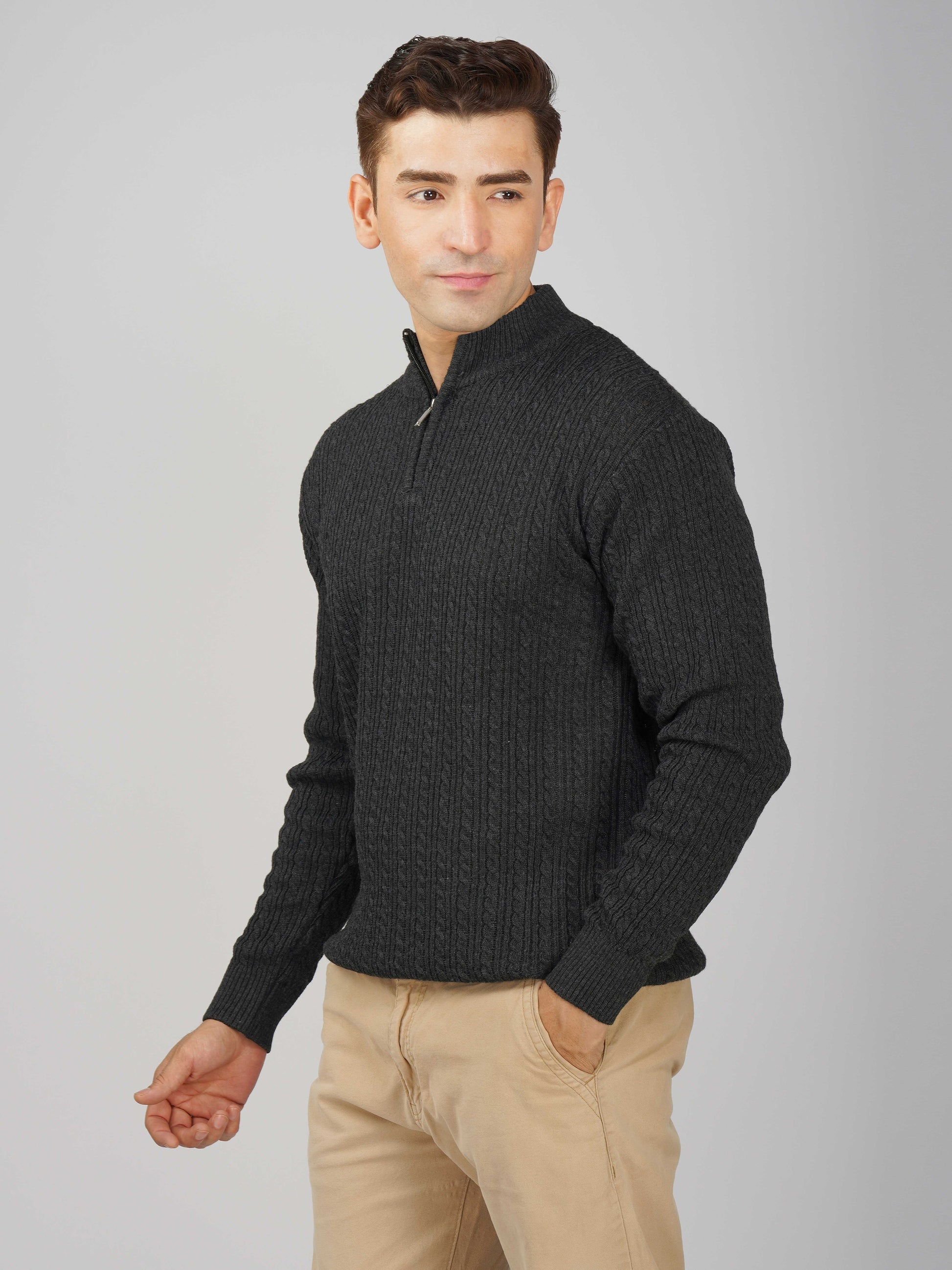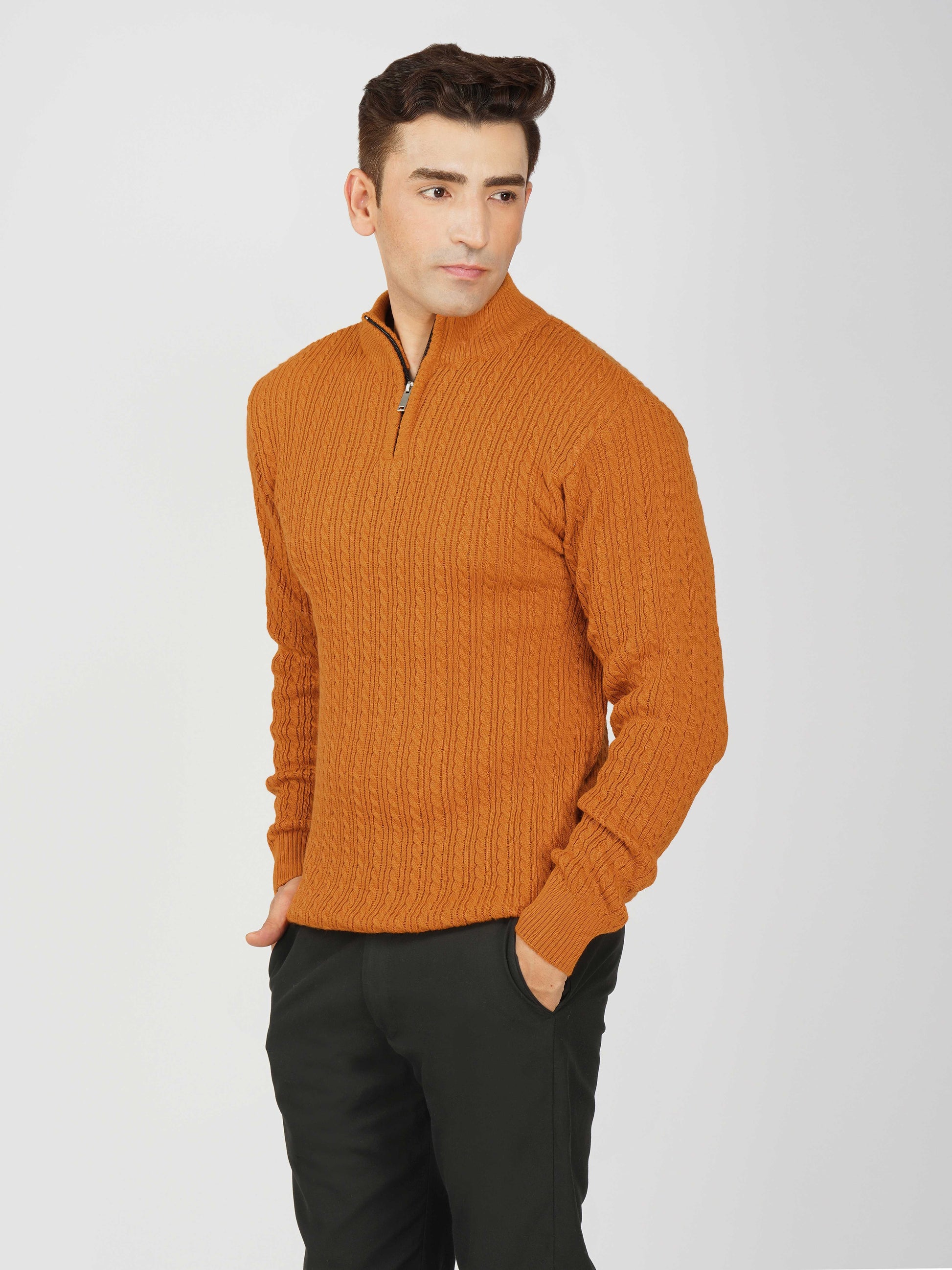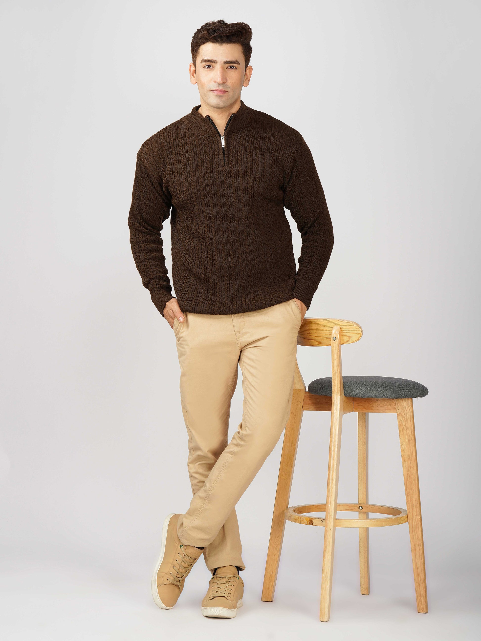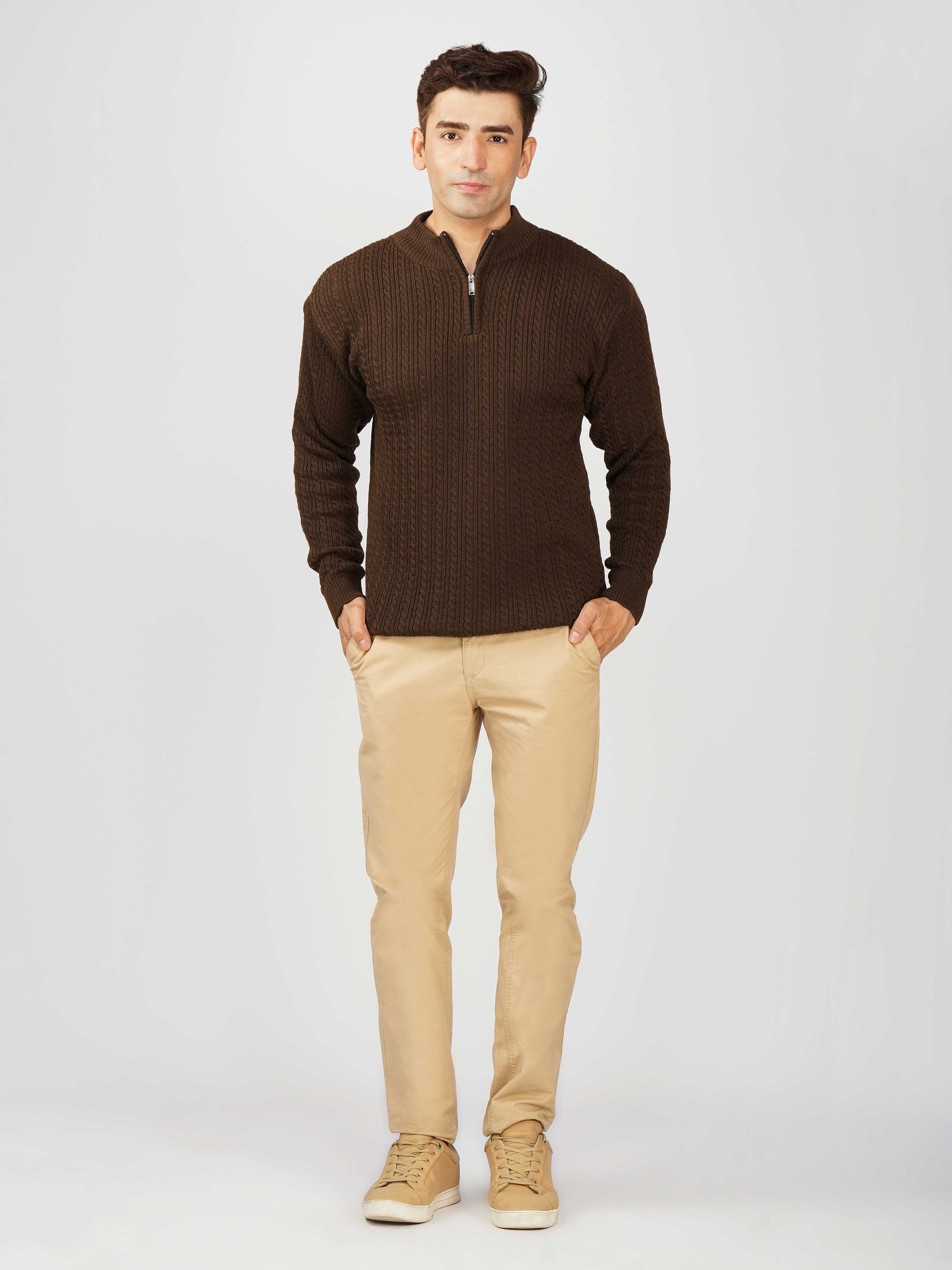 Elevate your winter style with the Kvetoo Men’s Quarter Zip Cable Knit Sweater. Crafted from premium knitted fabric, this pullover offers the perfect balance of warmth, breathability, and timeless design. The classic cable knit pattern adds texture and sophistication, while the quarter zip closure allows versatile styling – wear it zipped up for extra coziness or open for a relaxed look. Ideal for casual outings, office wear, and winter layering, this sweater is built for comfort and durability, making it an essential addition to your cold-weather wardrobe.