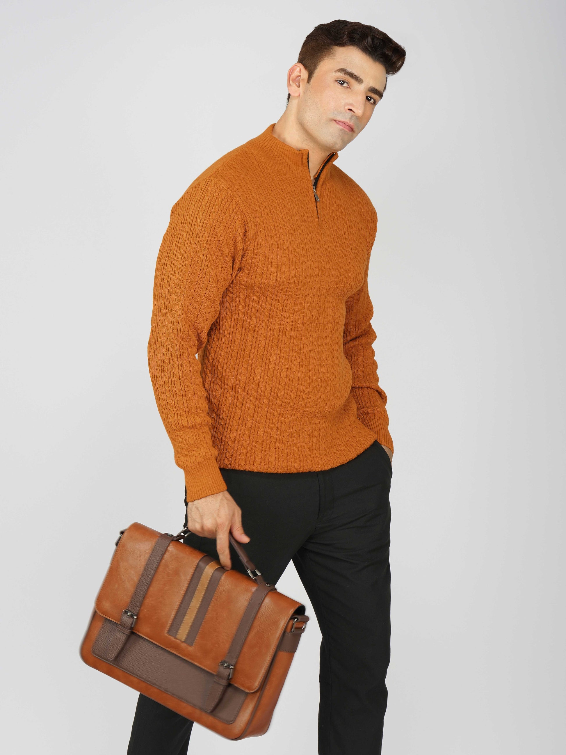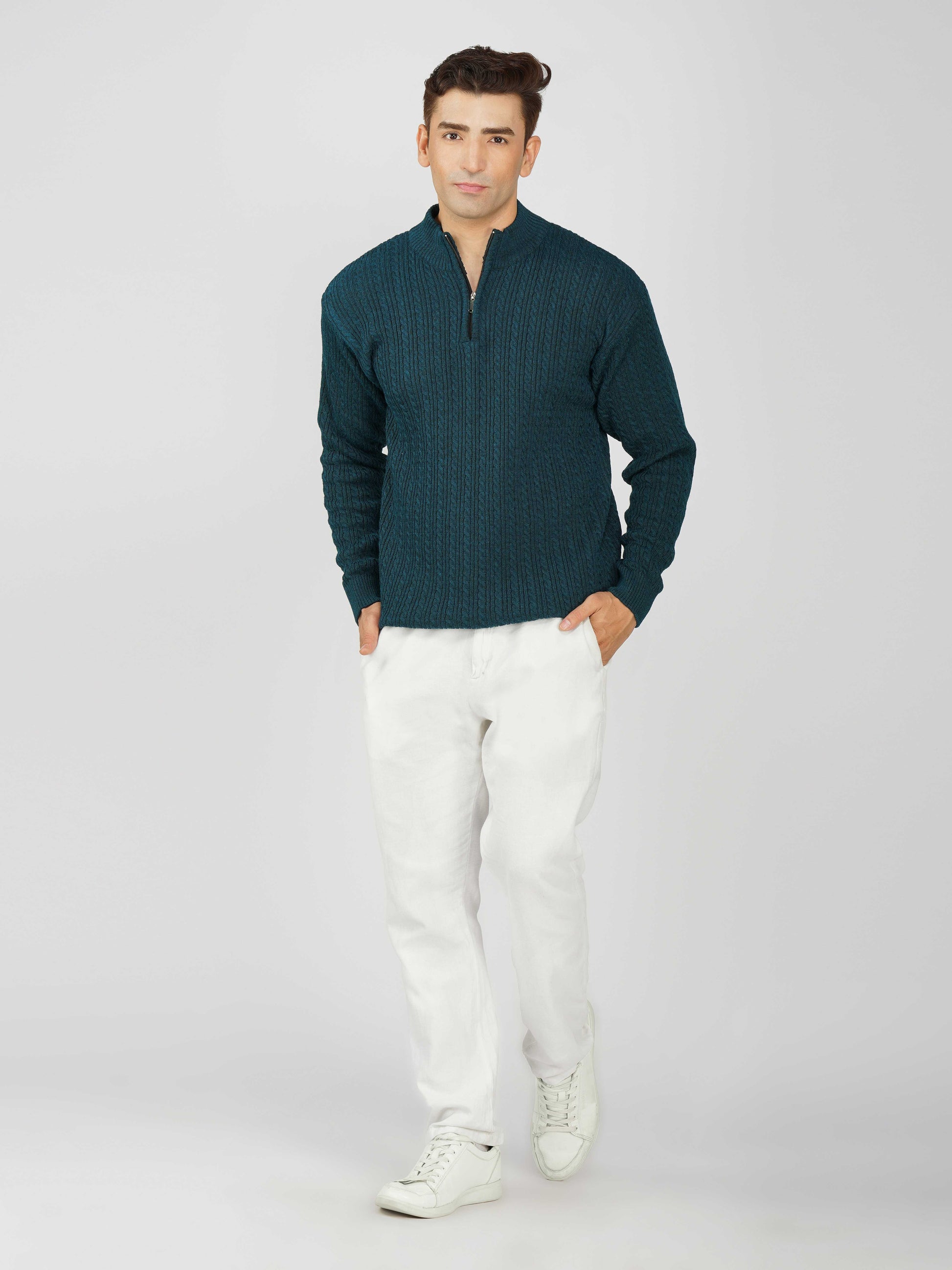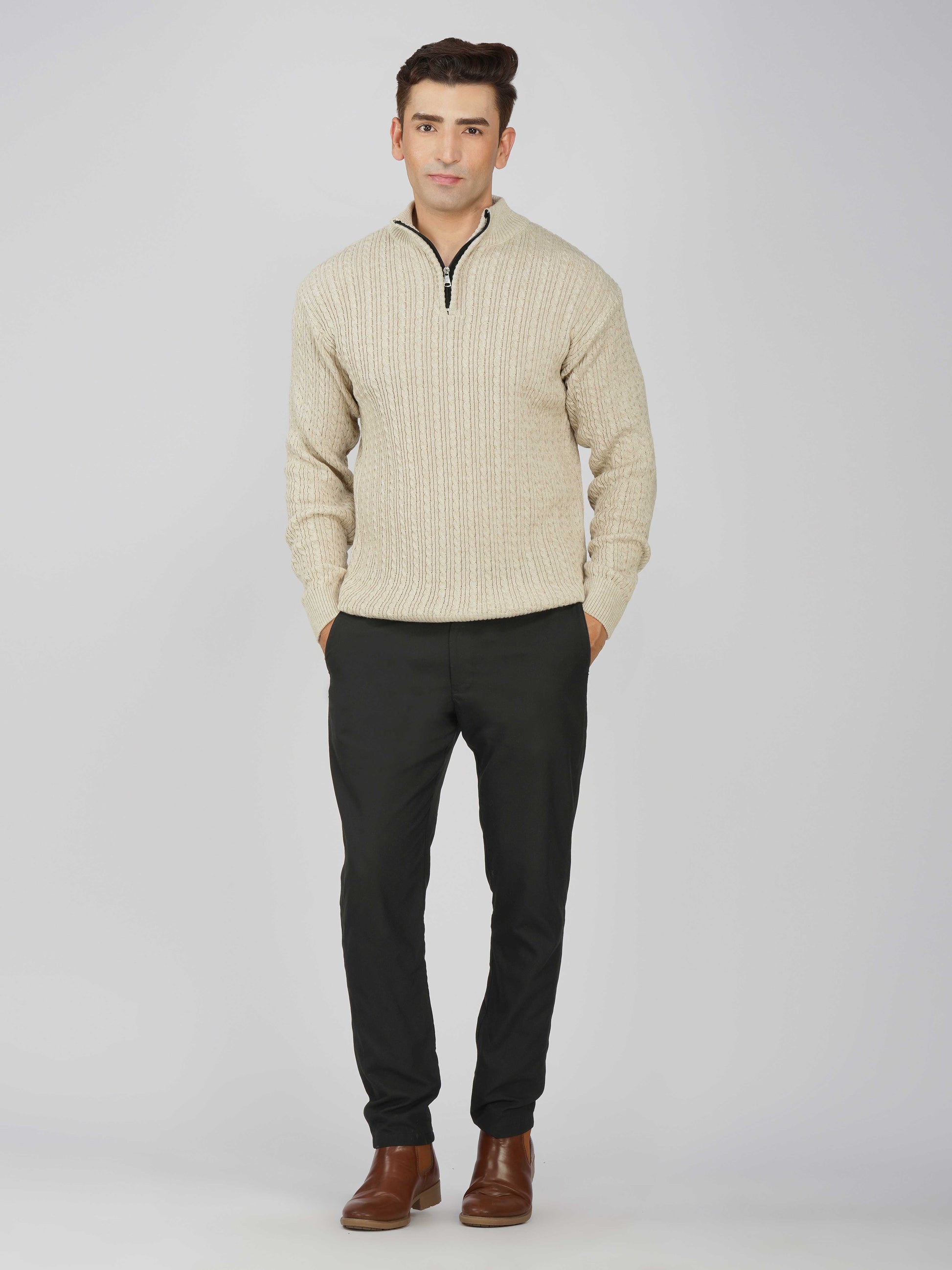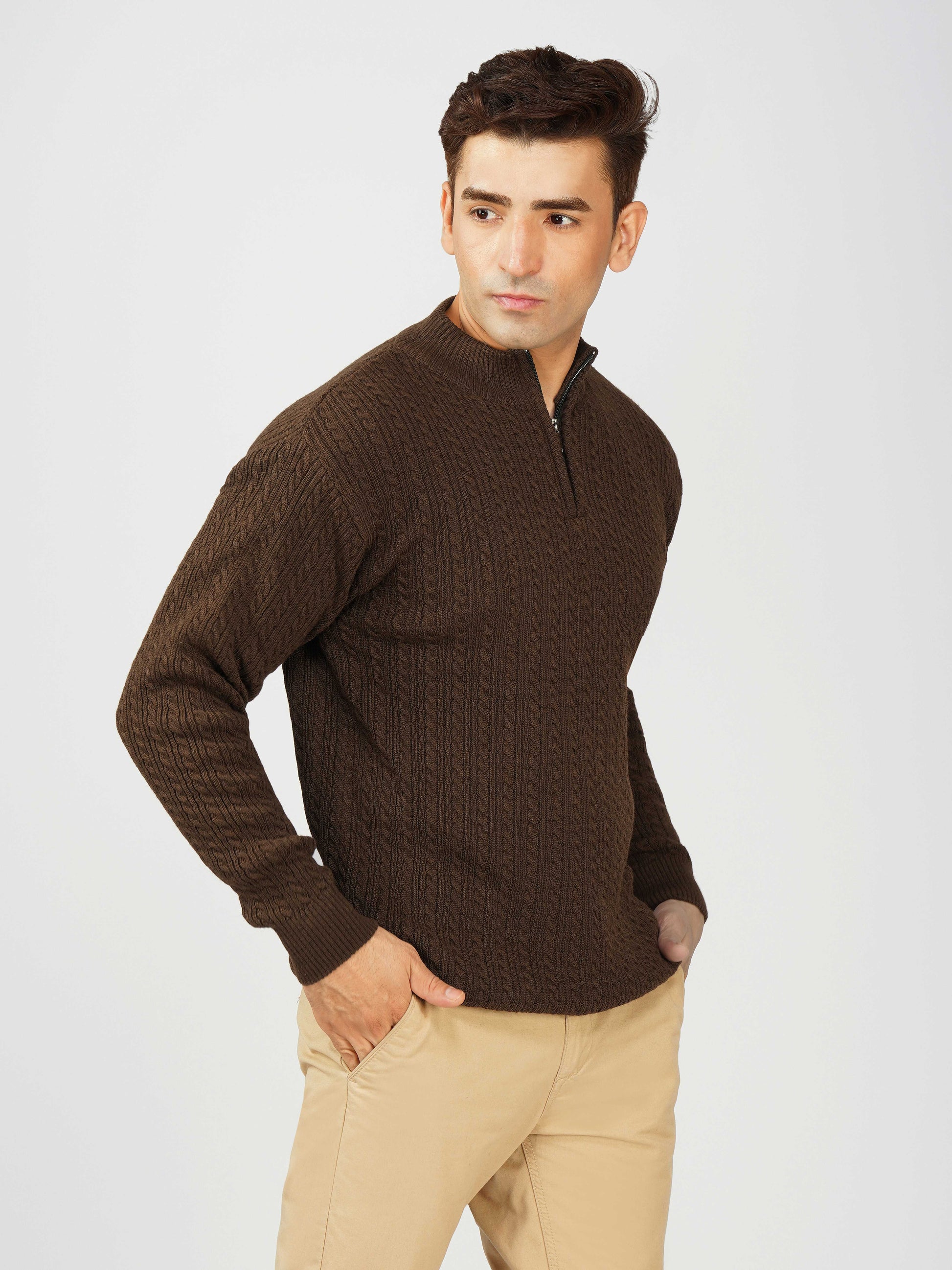 Elevate your winter style with the Kvetoo Men’s Quarter Zip Cable Knit Sweater. Crafted from premium knitted fabric, this pullover offers the perfect balance of warmth, breathability, and timeless design. The classic cable knit pattern adds texture and sophistication, while the quarter zip closure allows versatile styling – wear it zipped up for extra coziness or open for a relaxed look. Ideal for casual outings, office wear, and winter layering, this sweater is built for comfort and durability, making it an essential addition to your cold-weather wardrobe.