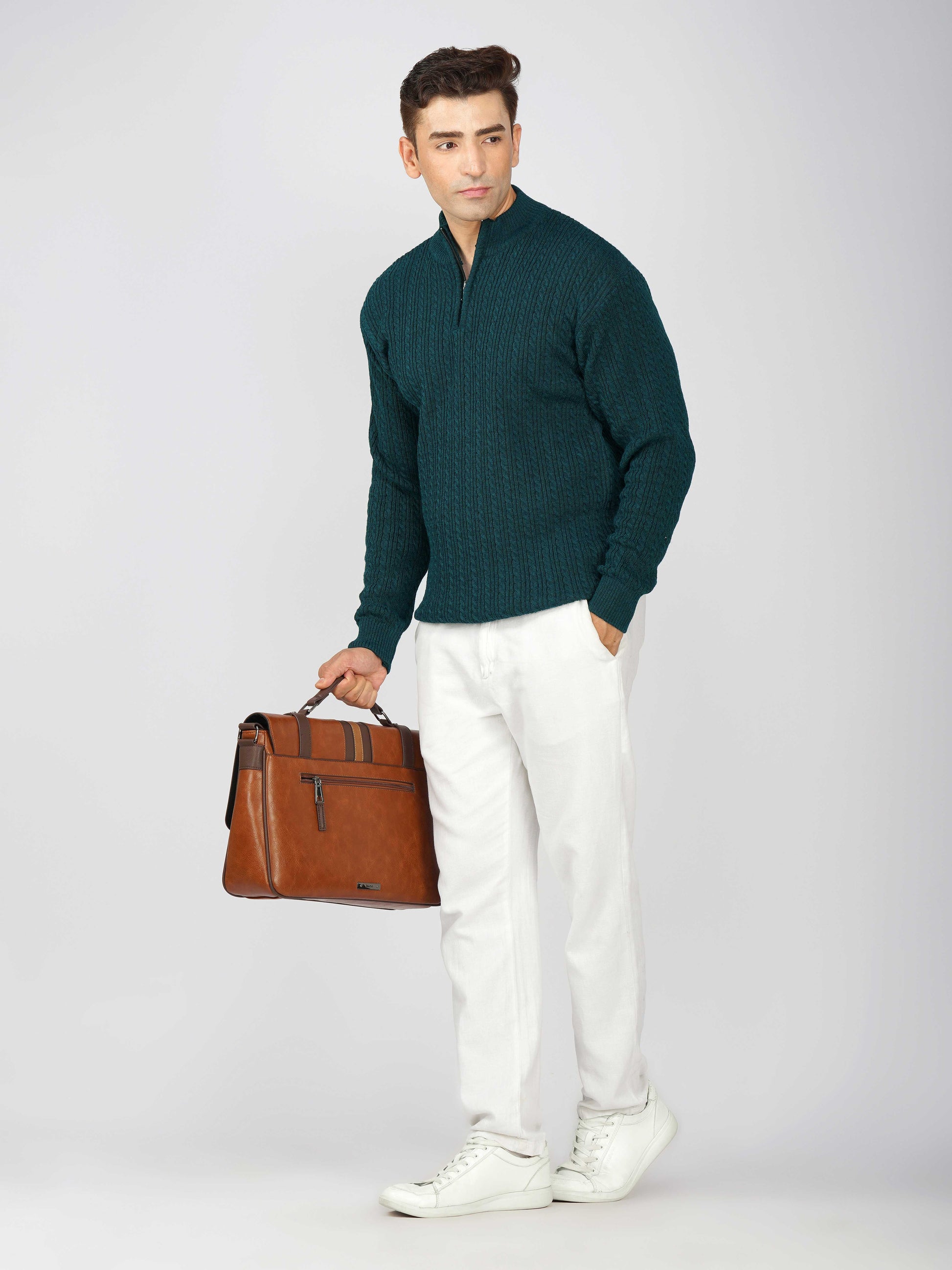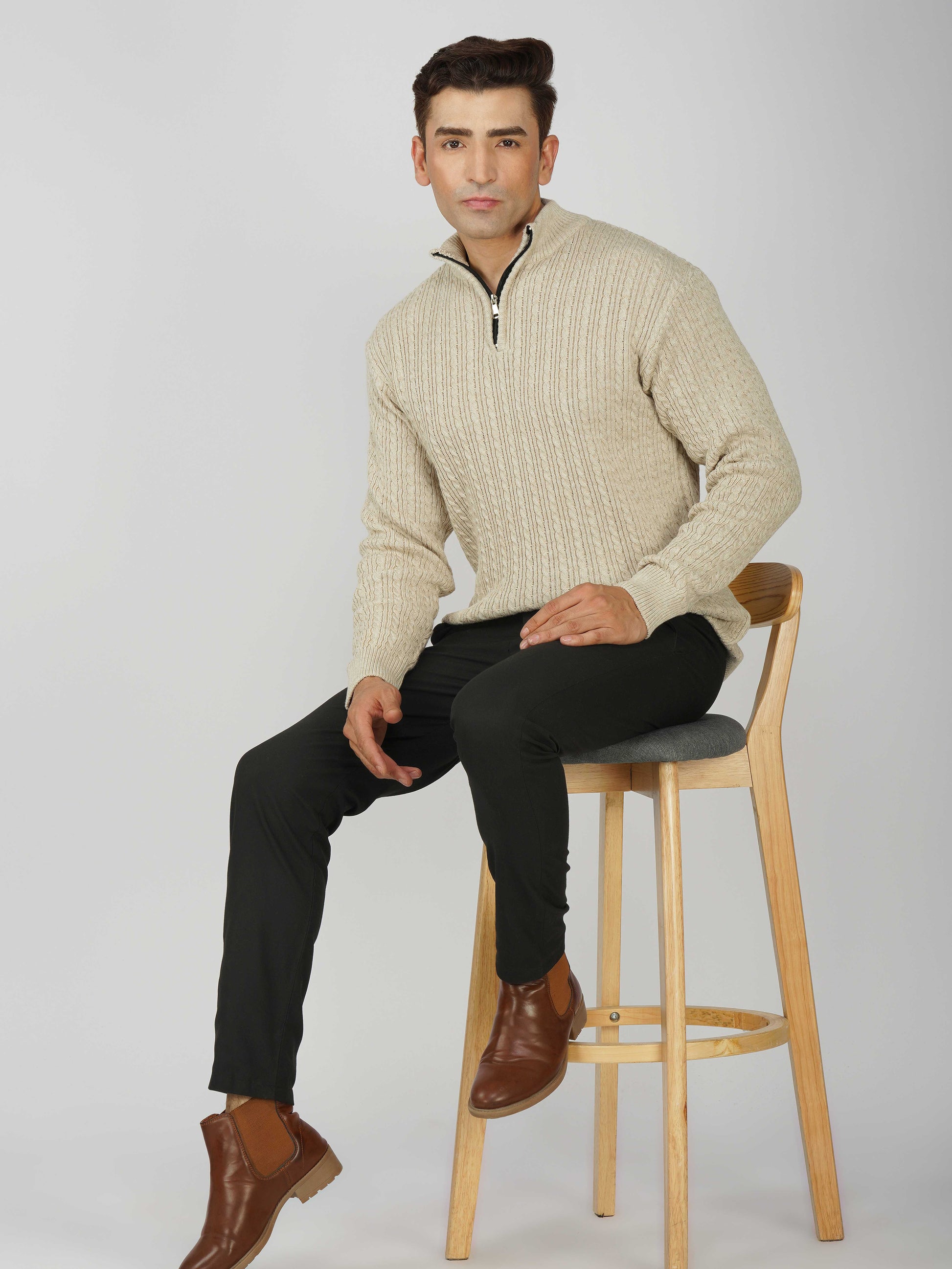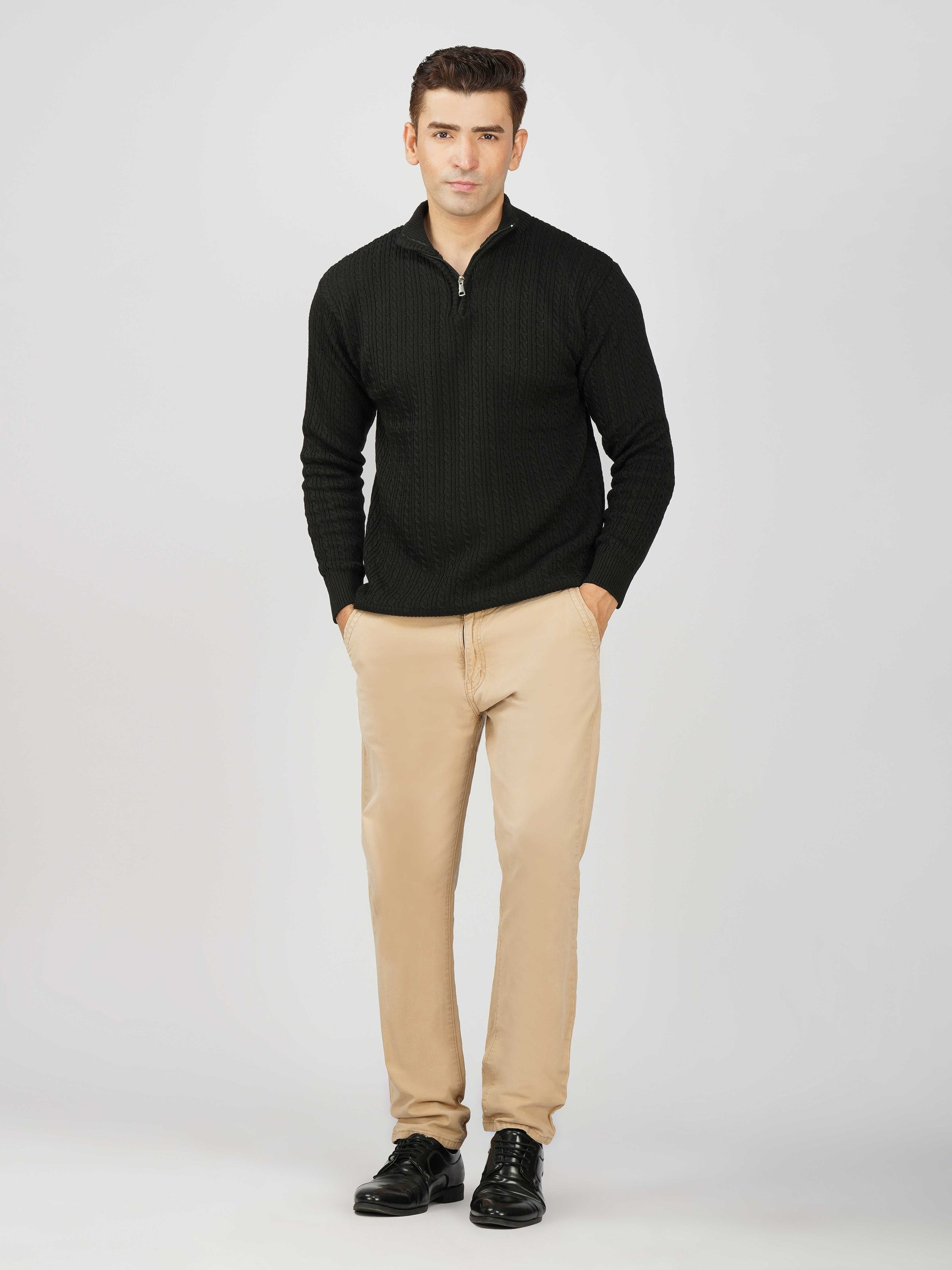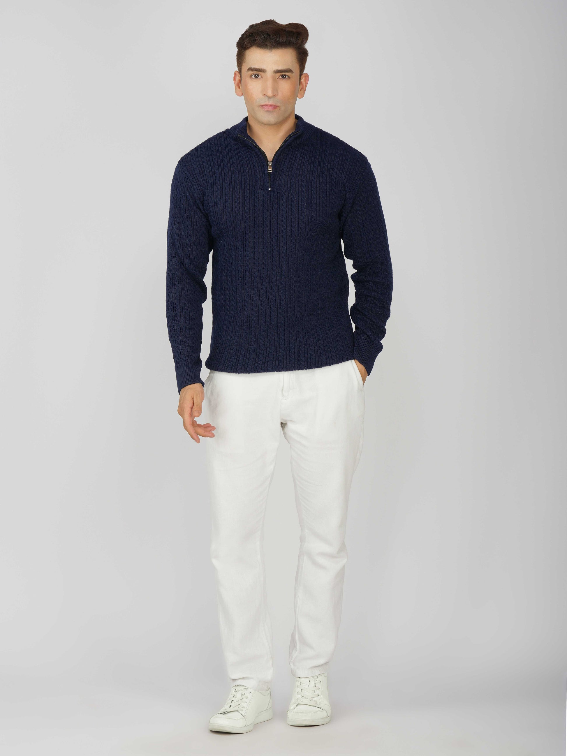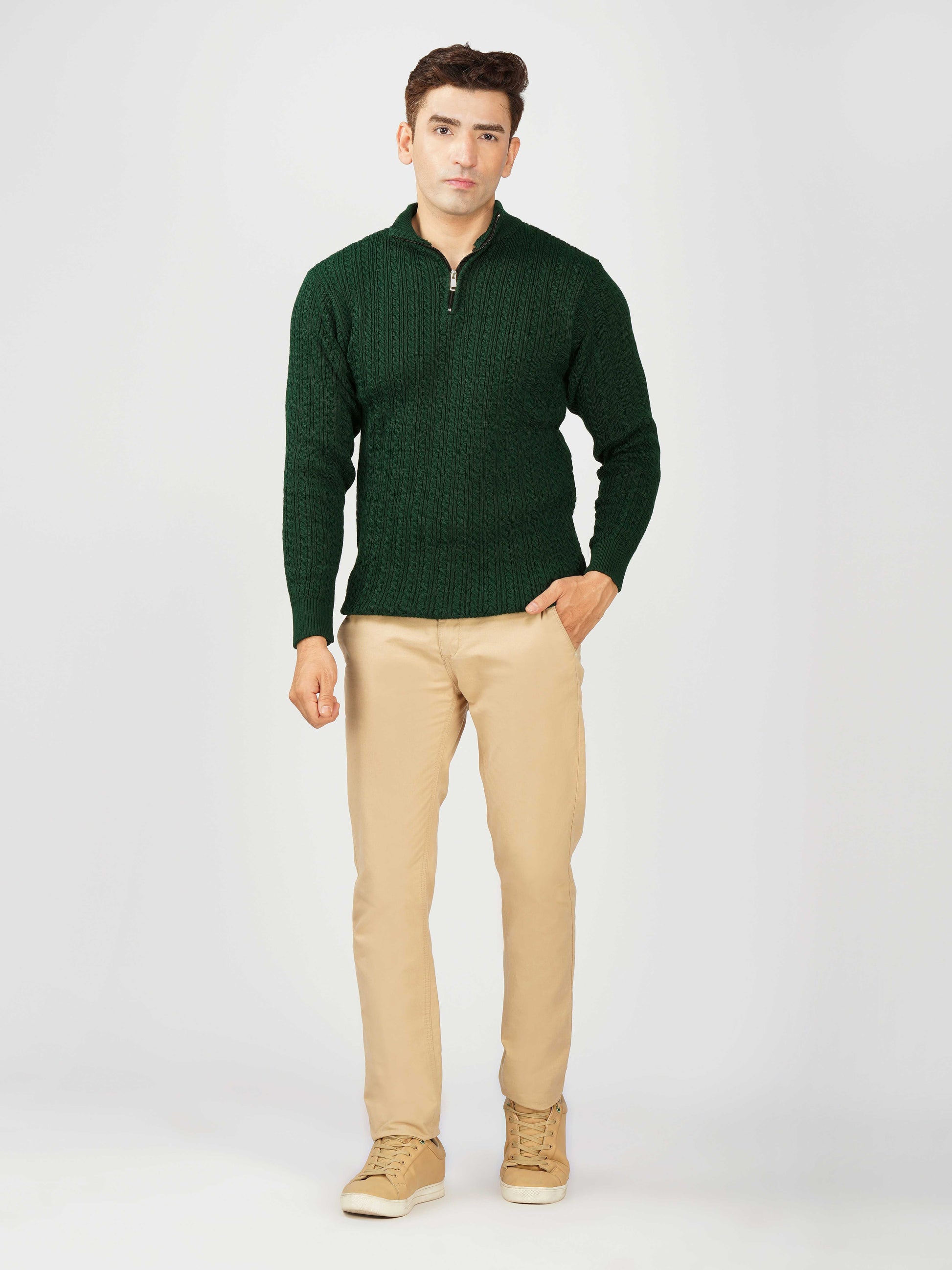 Elevate your winter style with the Kvetoo Men’s Quarter Zip Cable Knit Sweater. Crafted from premium knitted fabric, this pullover offers the perfect balance of warmth, breathability, and timeless design. The classic cable knit pattern adds texture and sophistication, while the quarter zip closure allows versatile styling – wear it zipped up for extra coziness or open for a relaxed look. Ideal for casual outings, office wear, and winter layering, this sweater is built for comfort and durability, making it an essential addition to your cold-weather wardrobe.