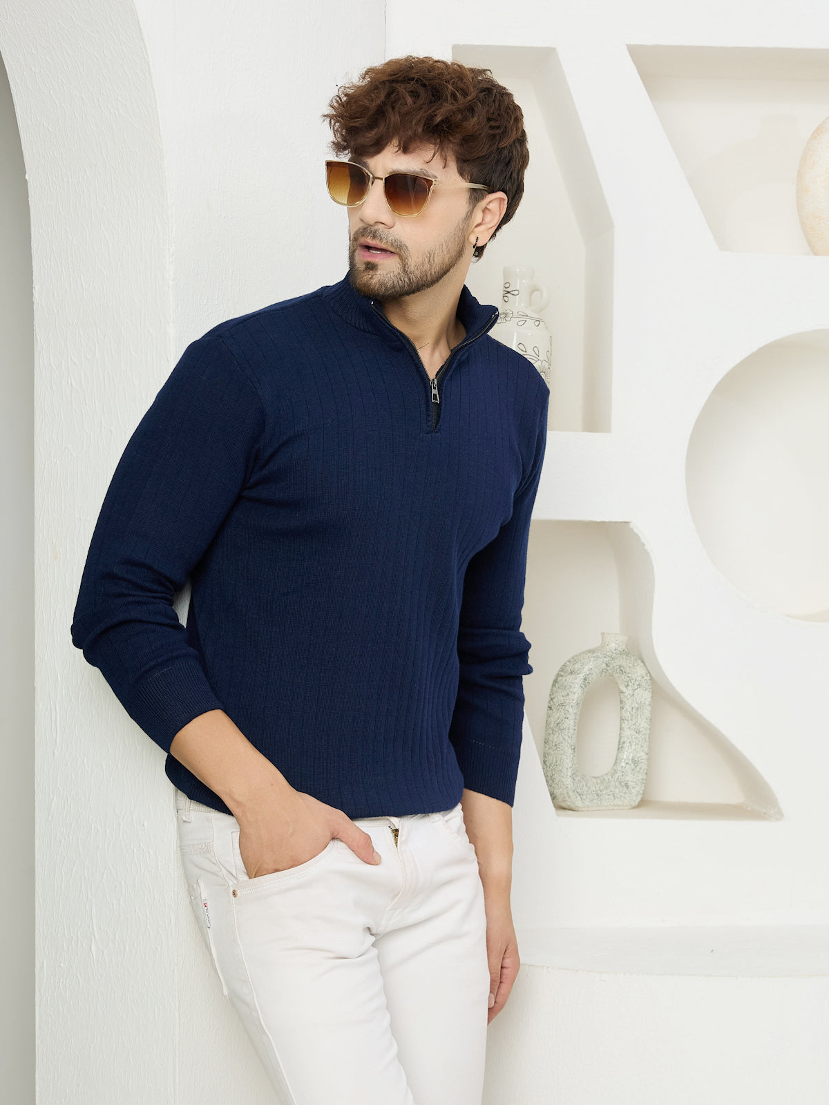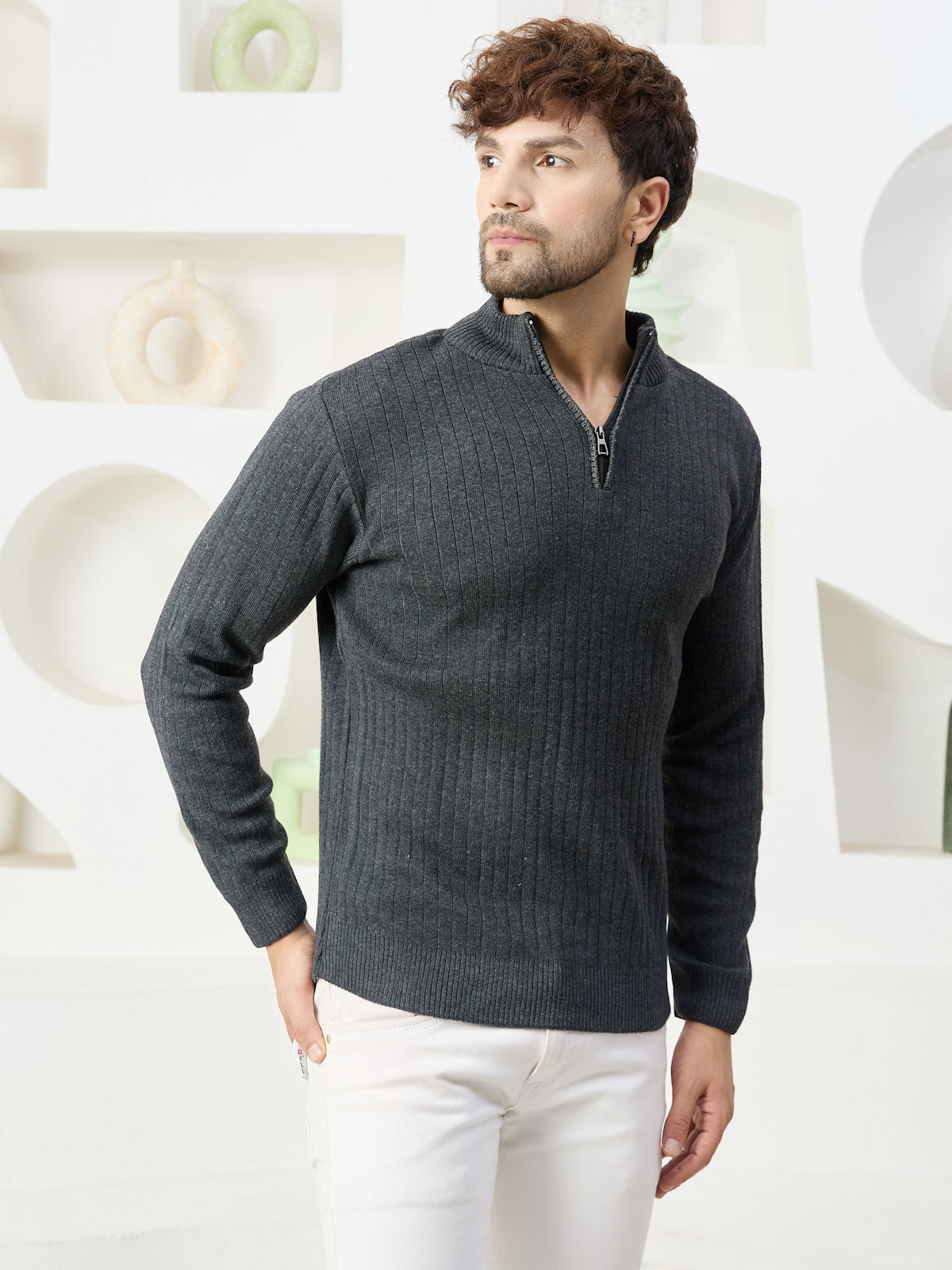 Kvetoo Mens Quarter Zip Self Design Warm Winter Wear Sweater