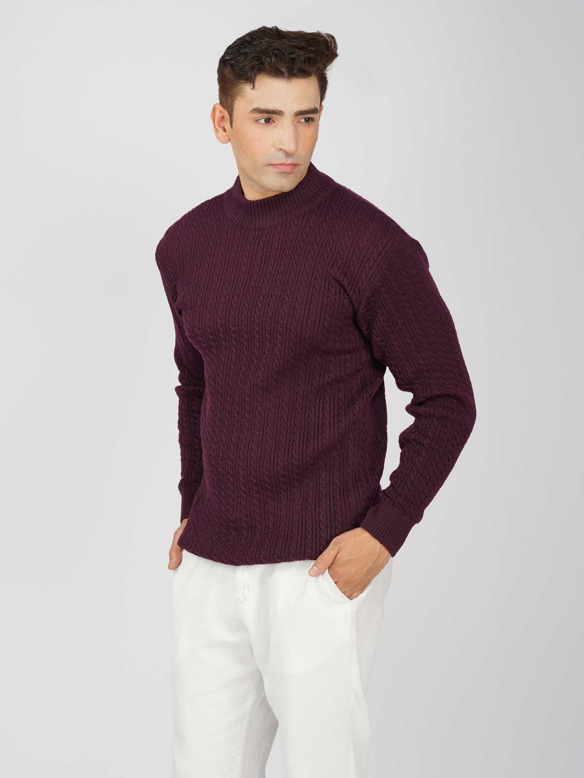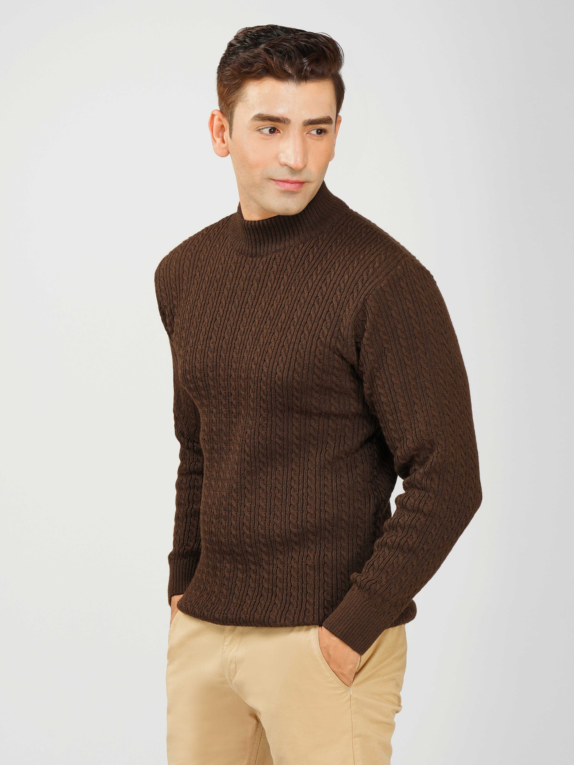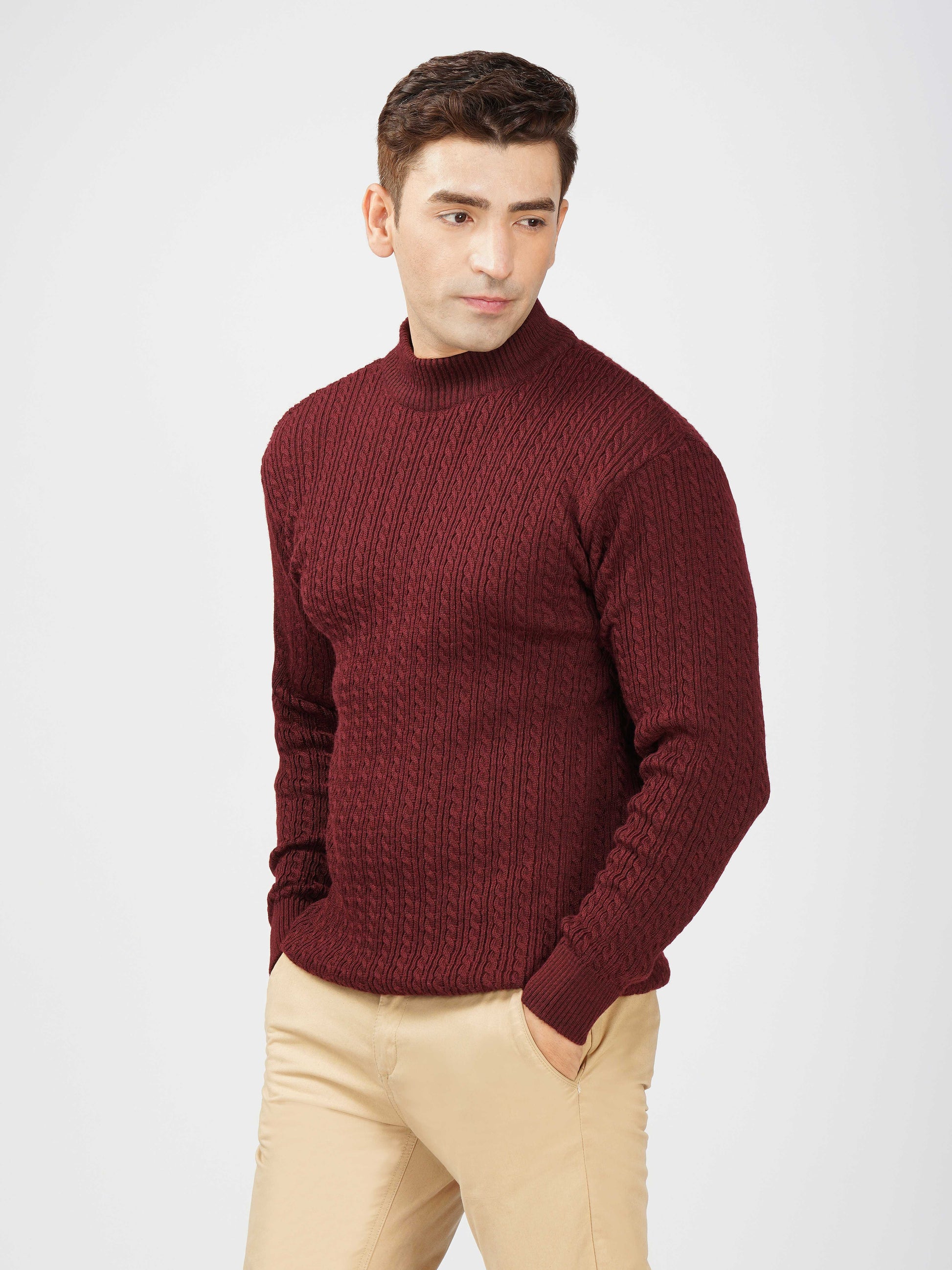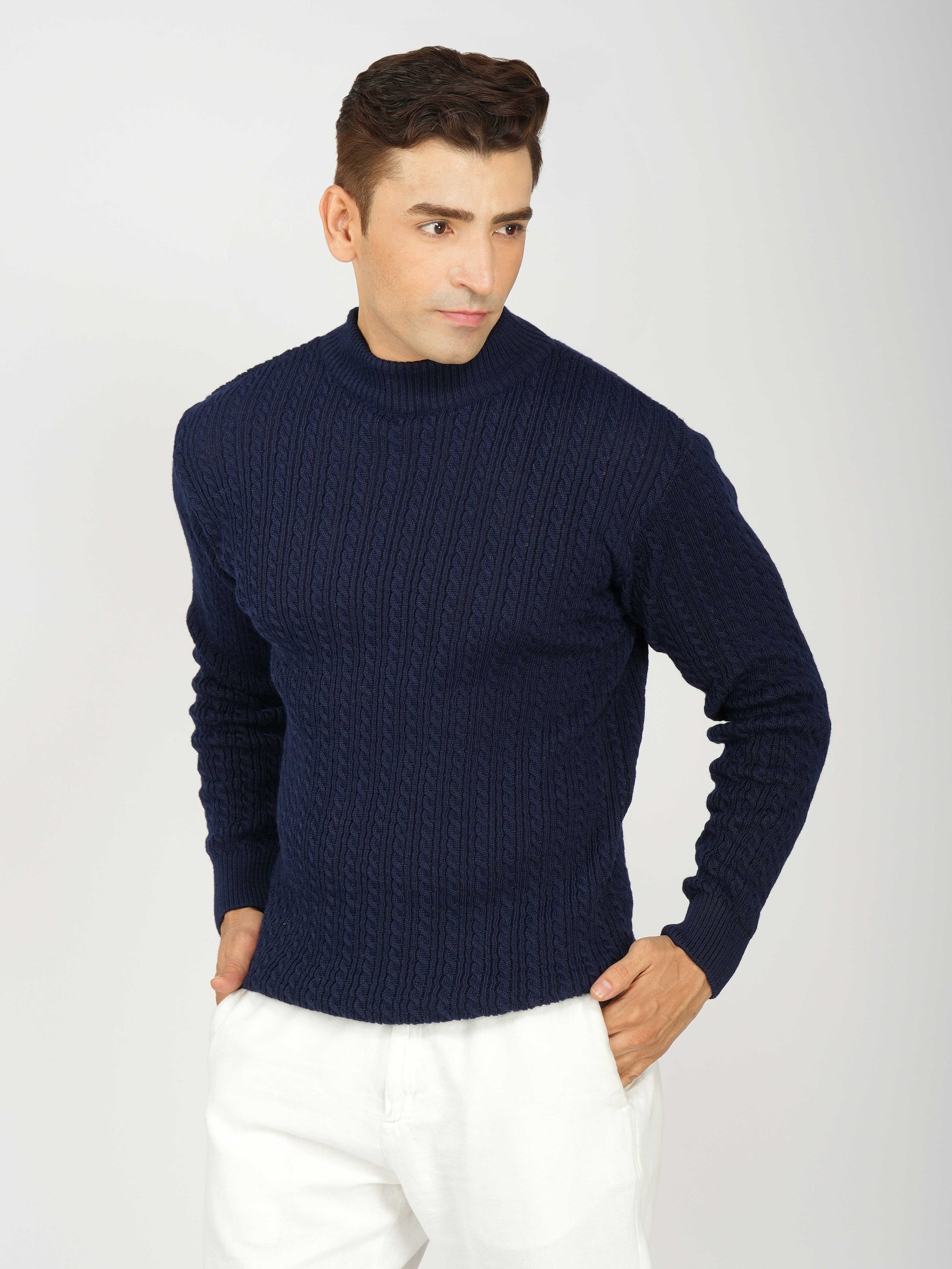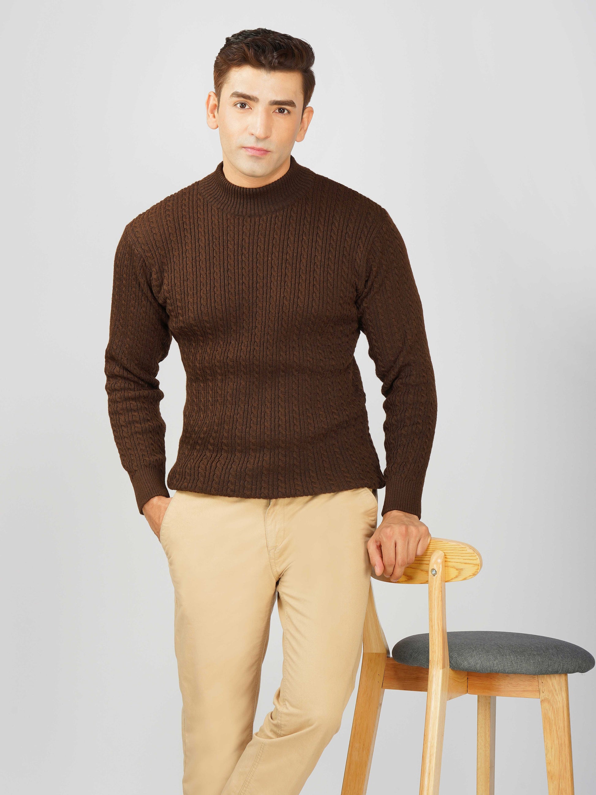 Upgrade your winter wardrobe with the Kvetoo Men’s Small Cable Knit High Neck Sweater. Crafted from premium-quality wool blend, this sweater features a classic small cable knit design and a stylish high neck to keep you warm and comfortable. Its slim-fit silhouette makes it perfect for layering over shirts or wearing solo for a refined look. Ideal for office wear, casual outings, and evening get-togethers, this versatile pullover combines elegance with practicality.