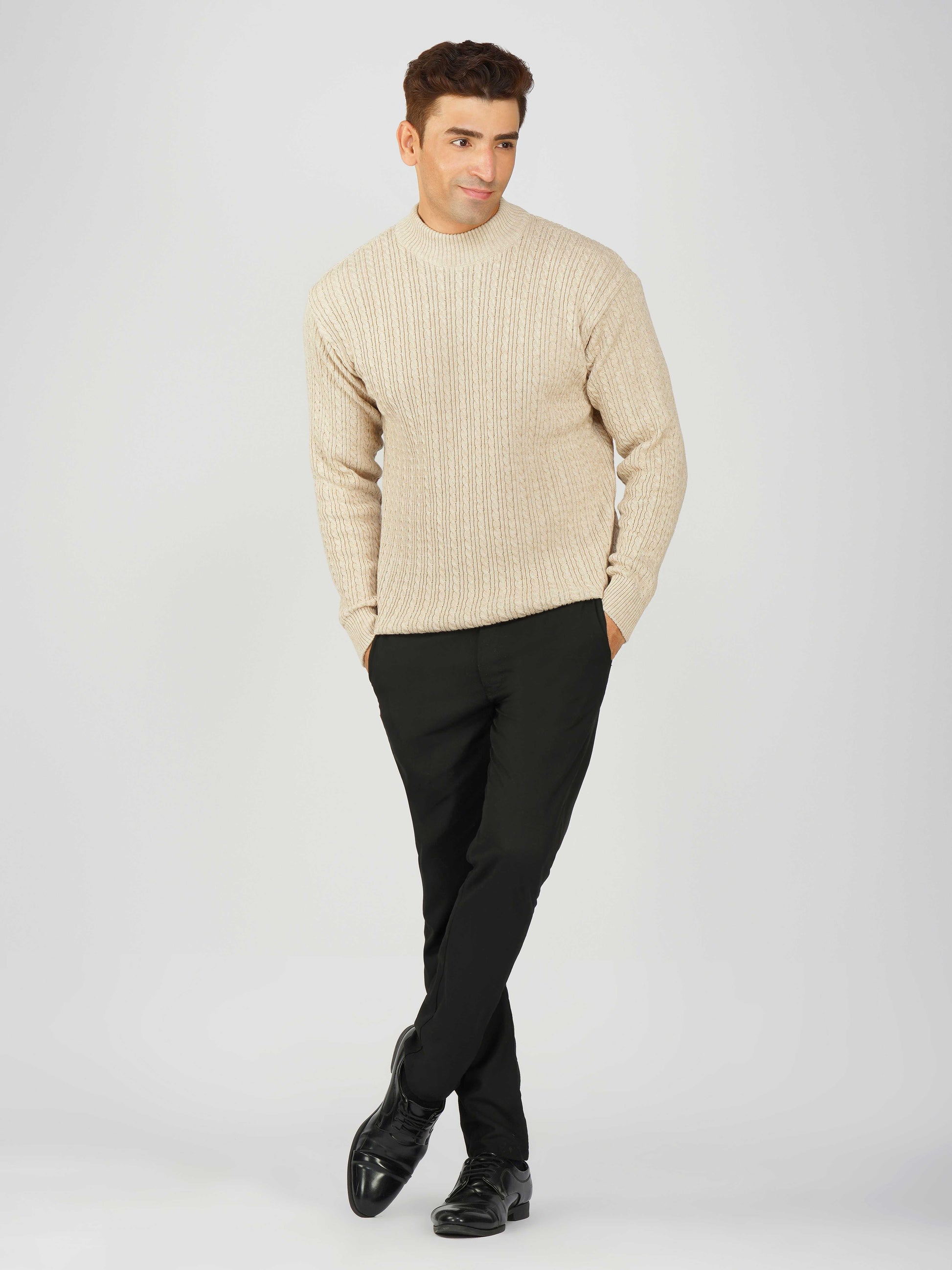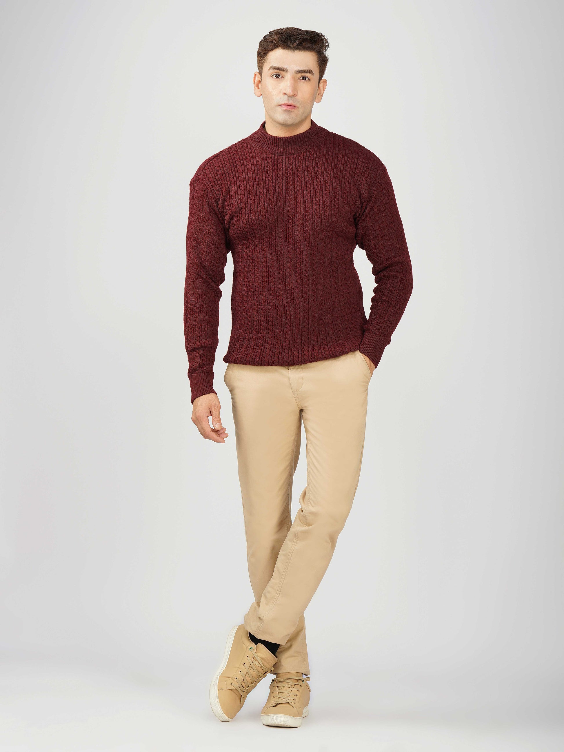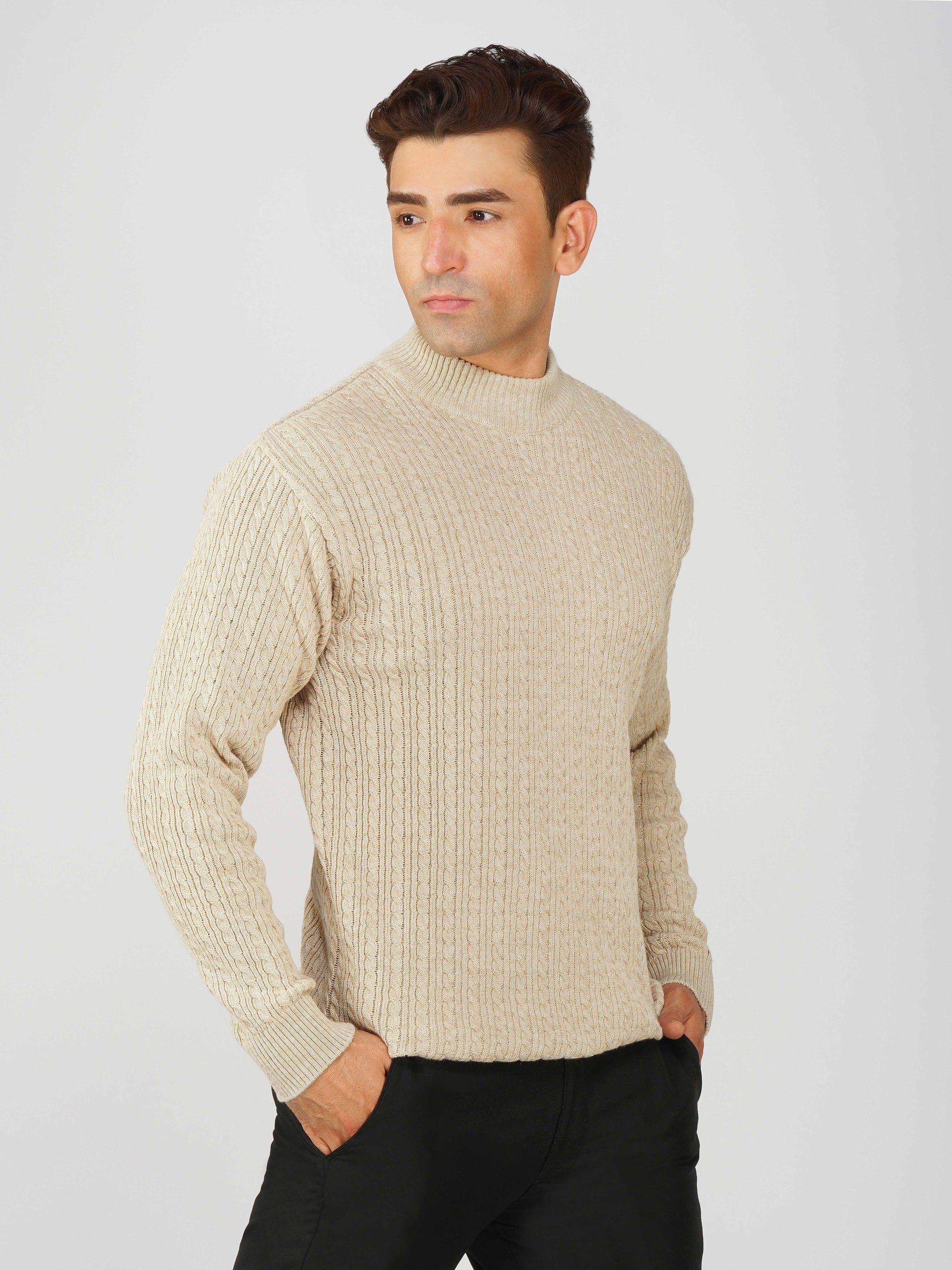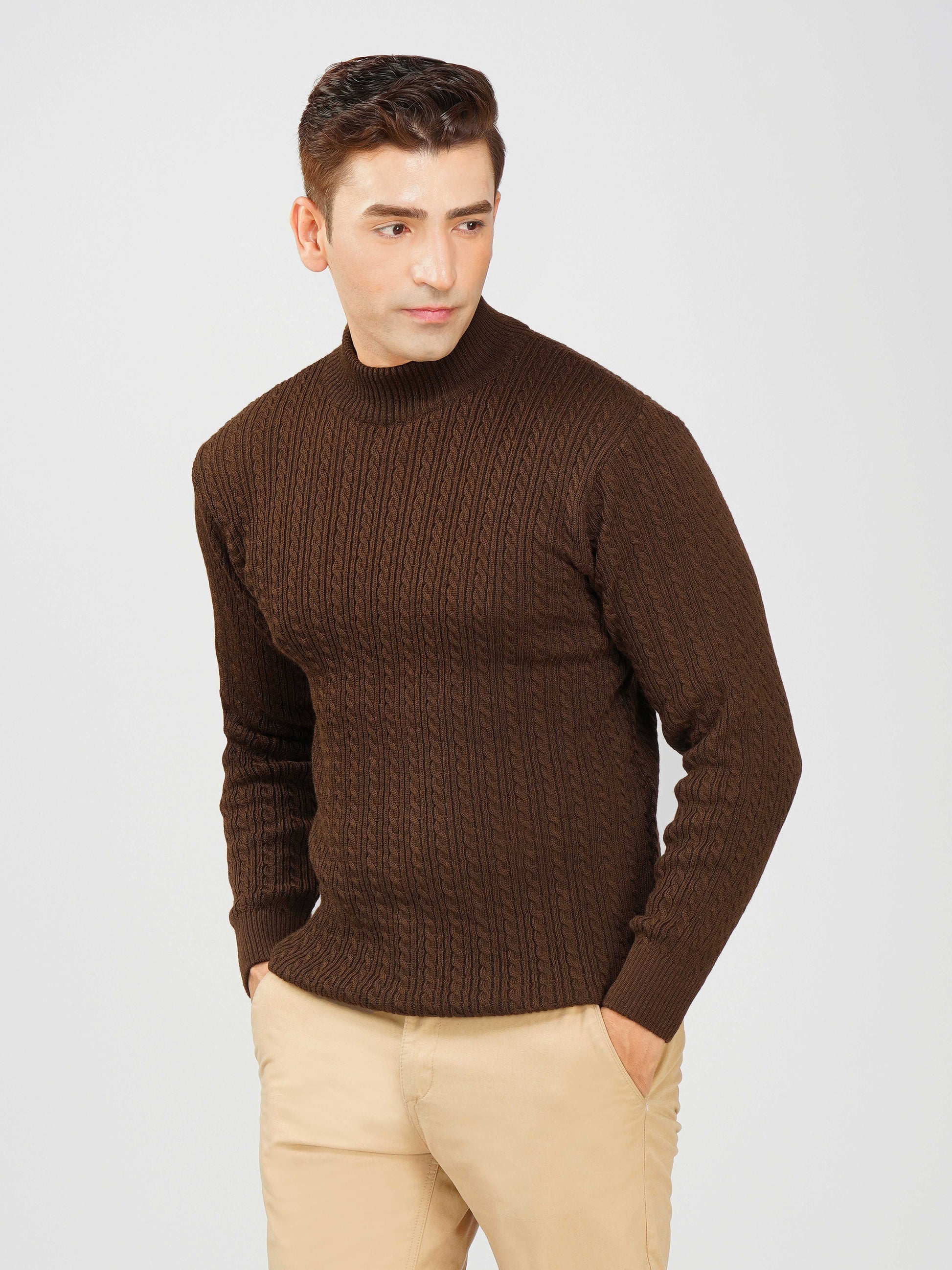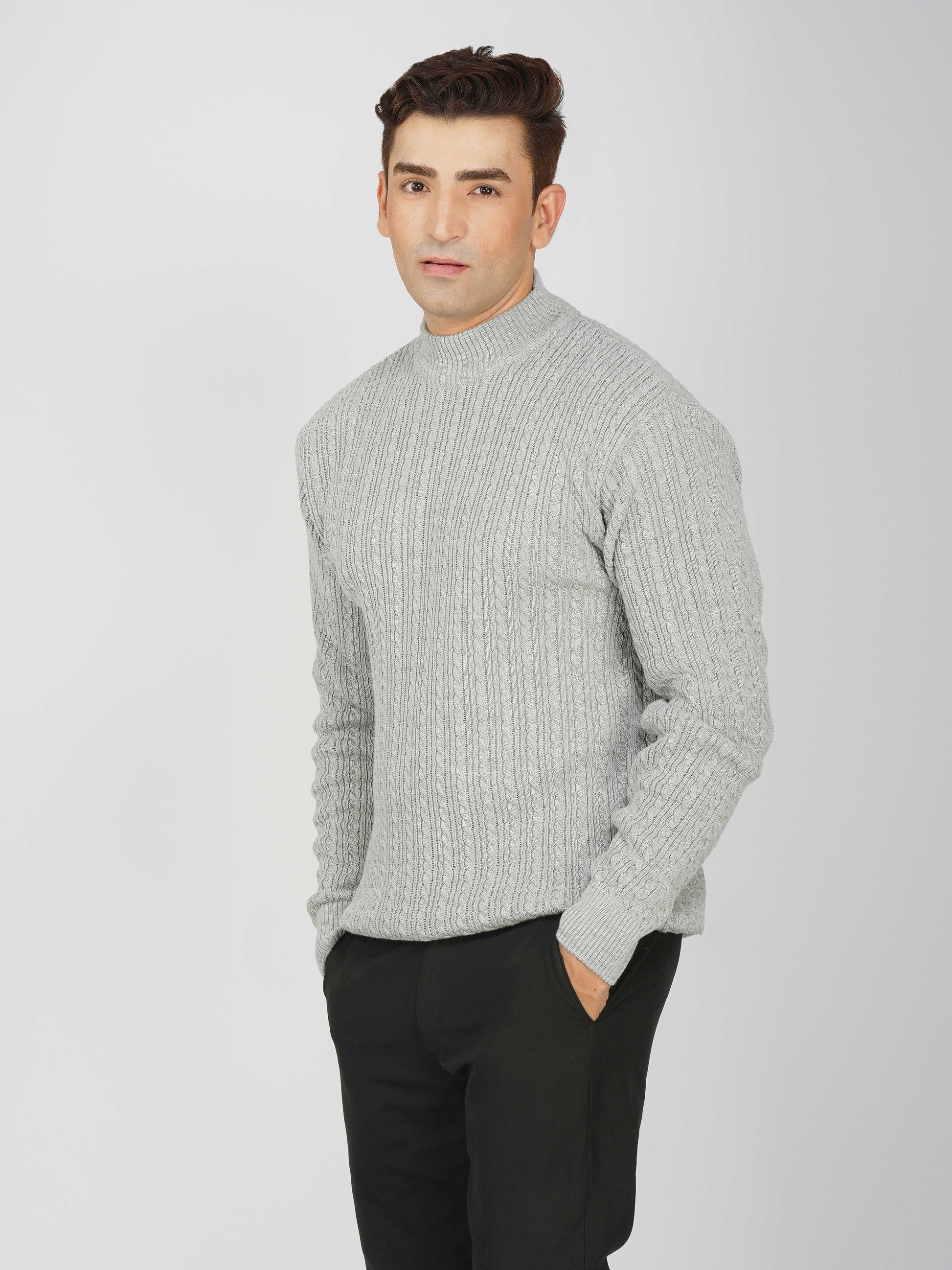 Upgrade your winter wardrobe with the Kvetoo Men’s Small Cable Knit High Neck Sweater. Crafted from premium-quality wool blend, this sweater features a classic small cable knit design and a stylish high neck to keep you warm and comfortable. Its slim-fit silhouette makes it perfect for layering over shirts or wearing solo for a refined look. Ideal for office wear, casual outings, and evening get-togethers, this versatile pullover combines elegance with practicality.