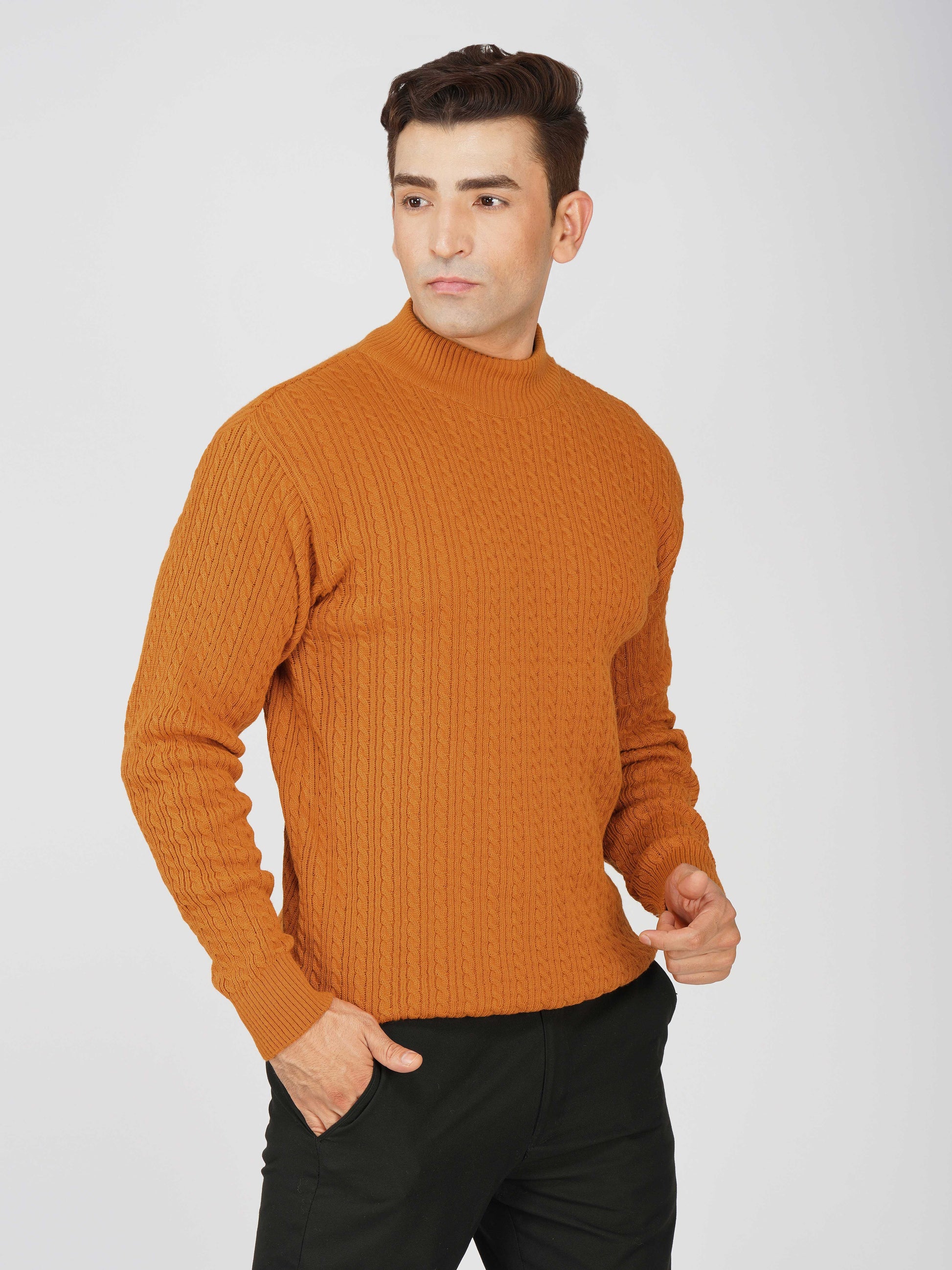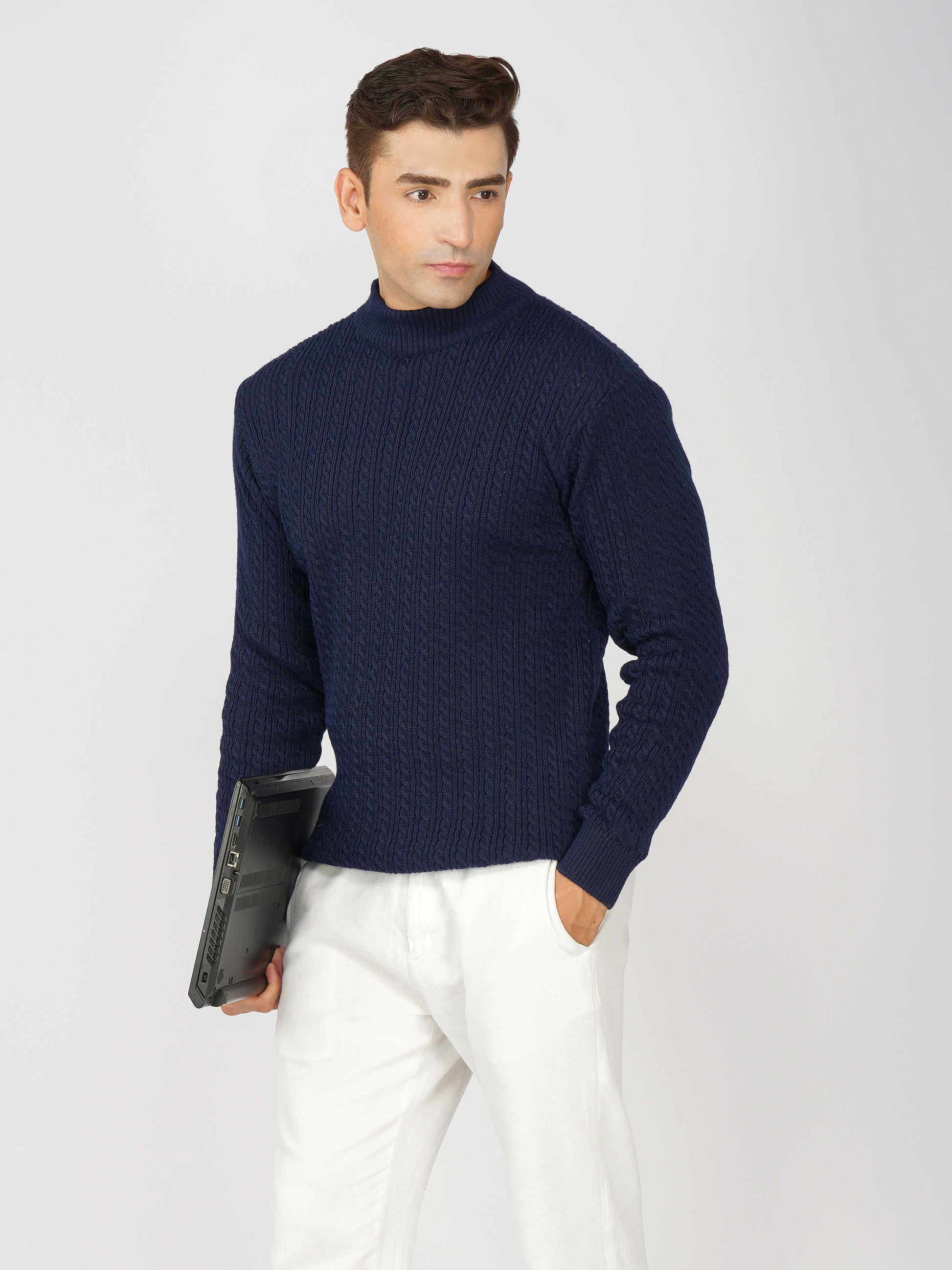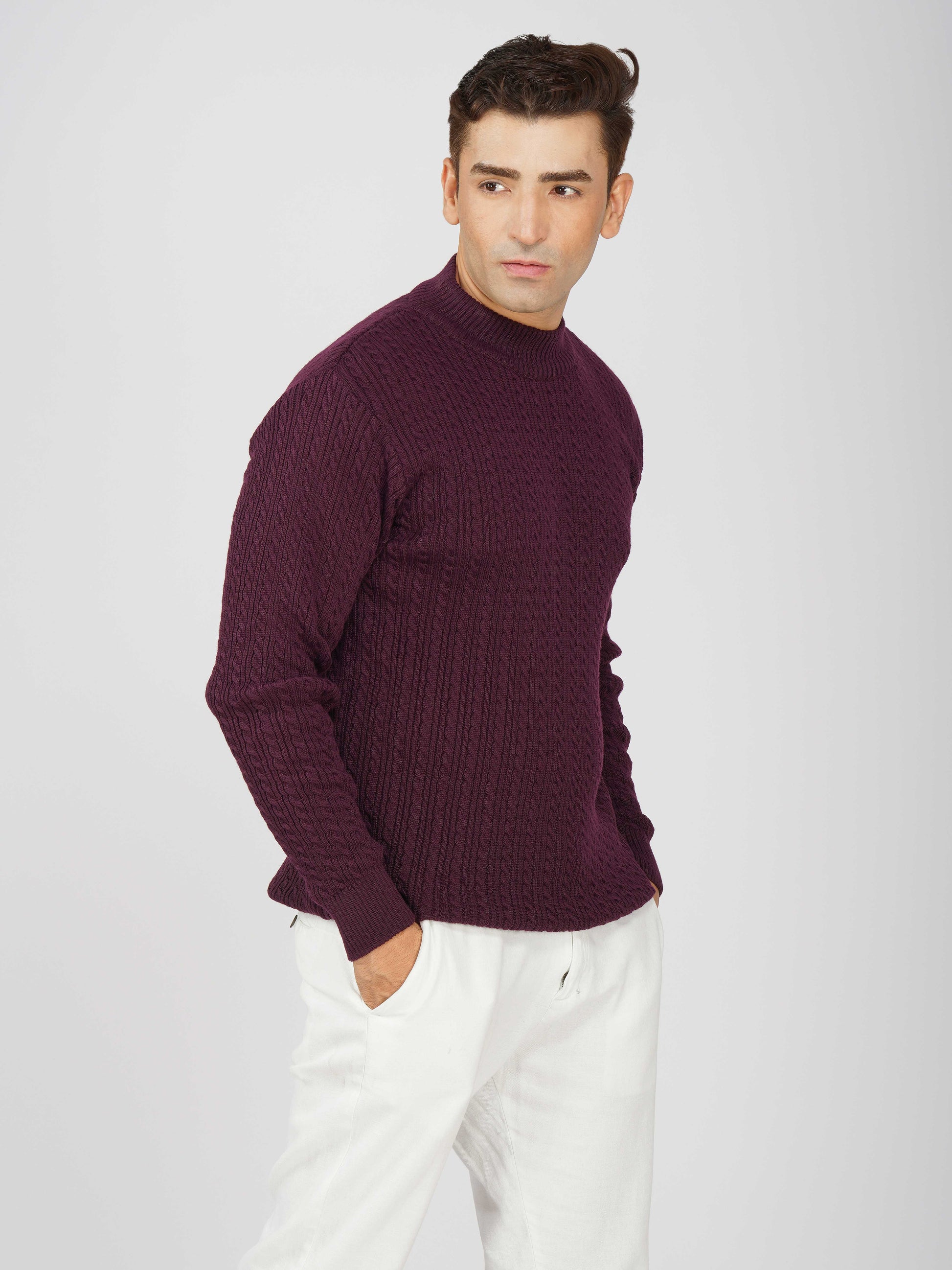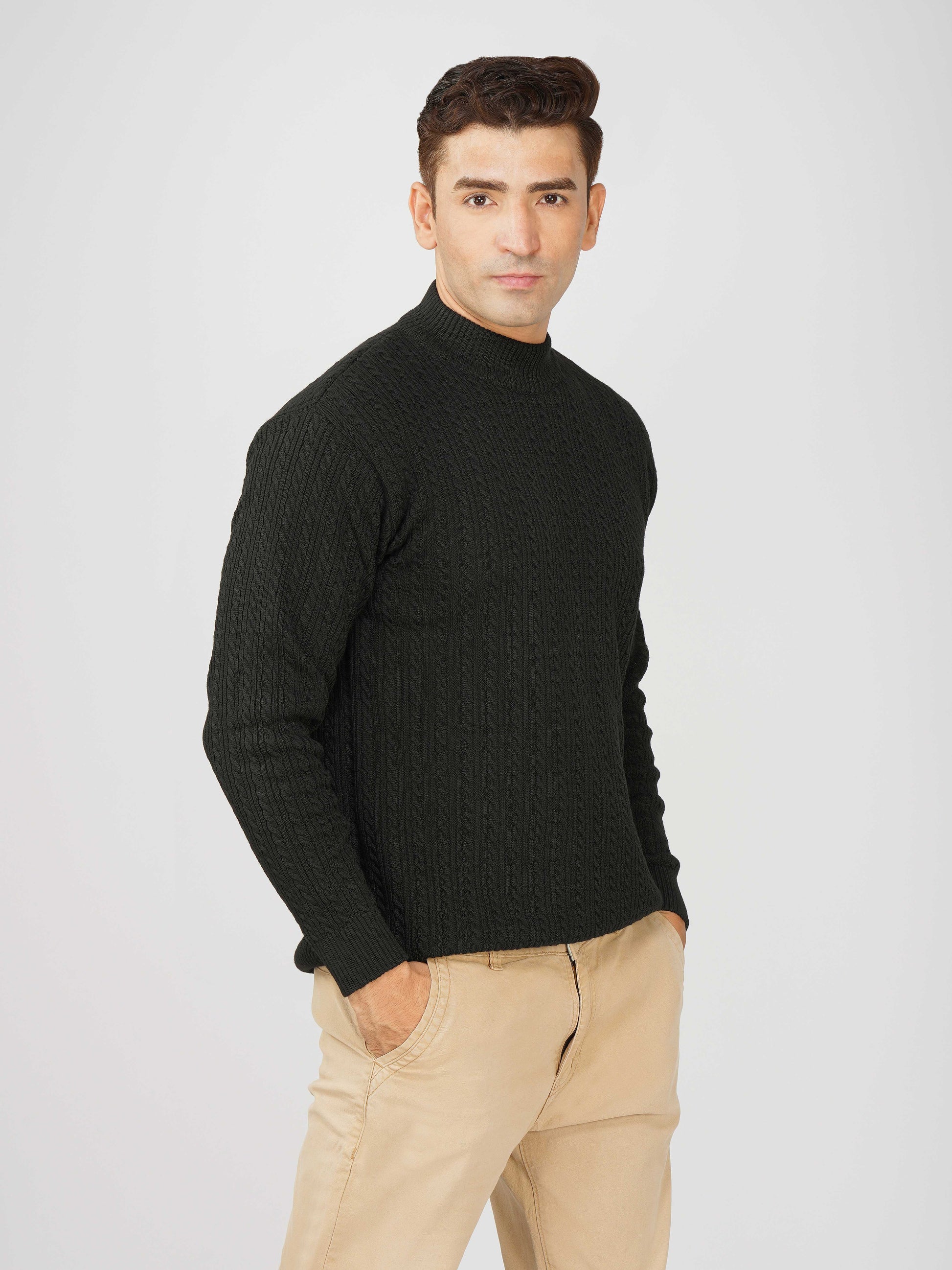 Upgrade your winter wardrobe with the Kvetoo Men’s Small Cable Knit High Neck Sweater. Crafted from premium-quality wool blend, this sweater features a classic small cable knit design and a stylish high neck to keep you warm and comfortable. Its slim-fit silhouette makes it perfect for layering over shirts or wearing solo for a refined look. Ideal for office wear, casual outings, and evening get-togethers, this versatile pullover combines elegance with practicality.