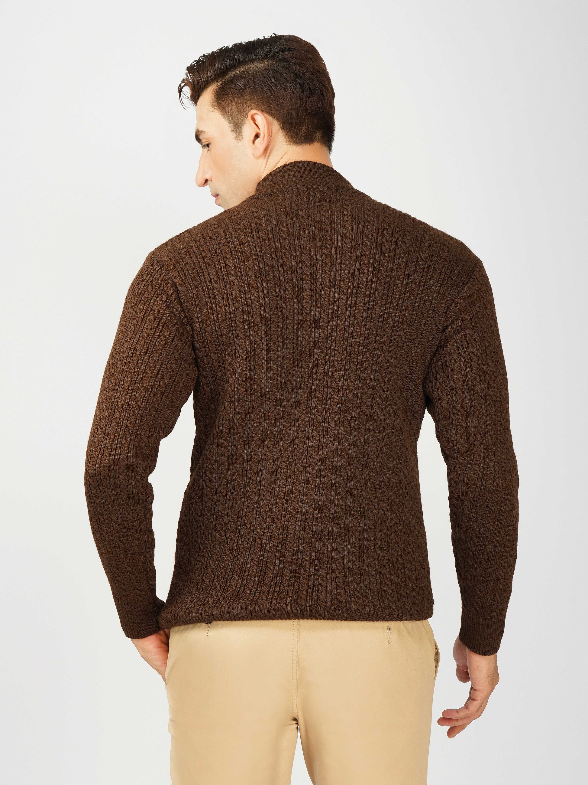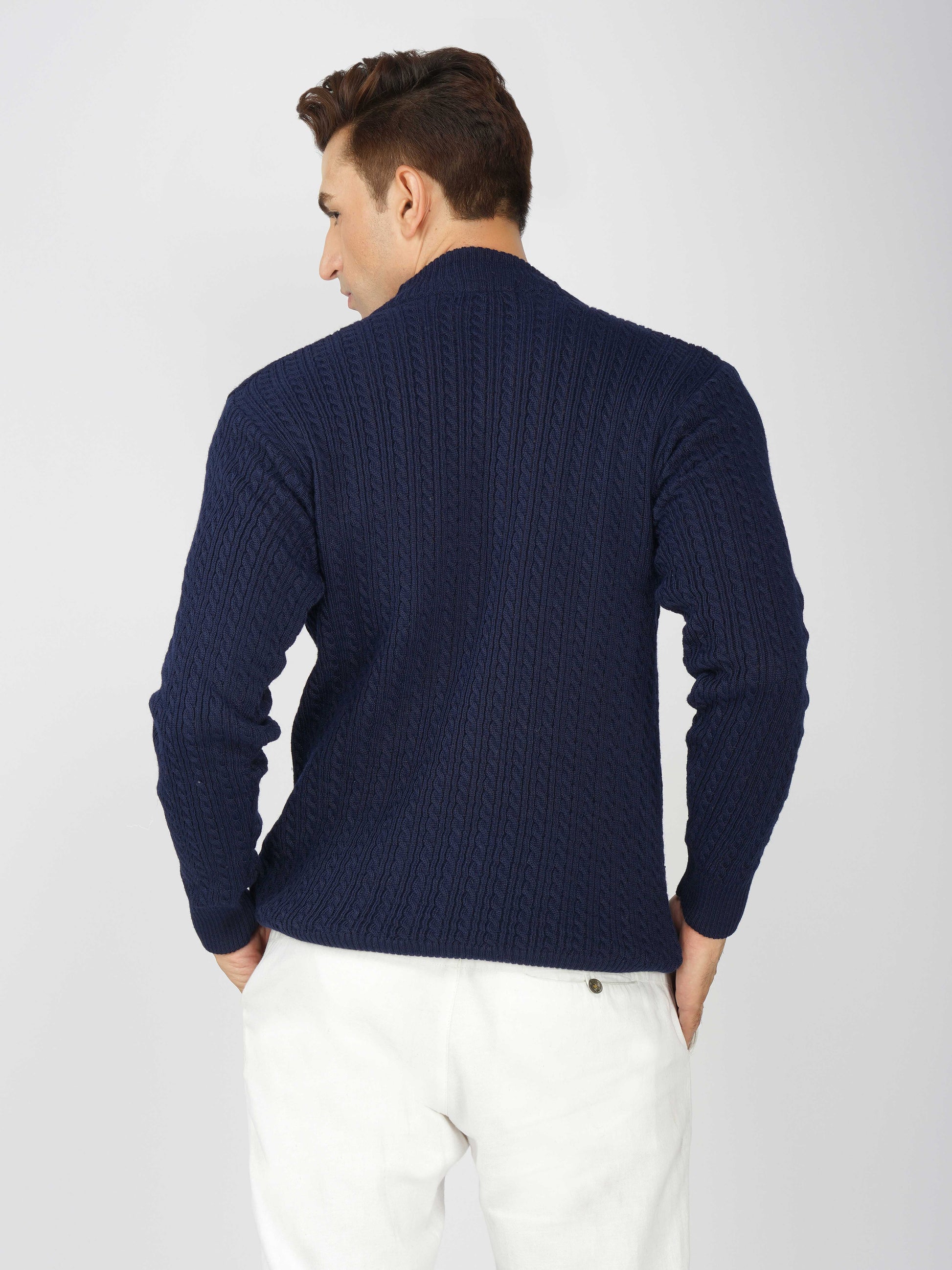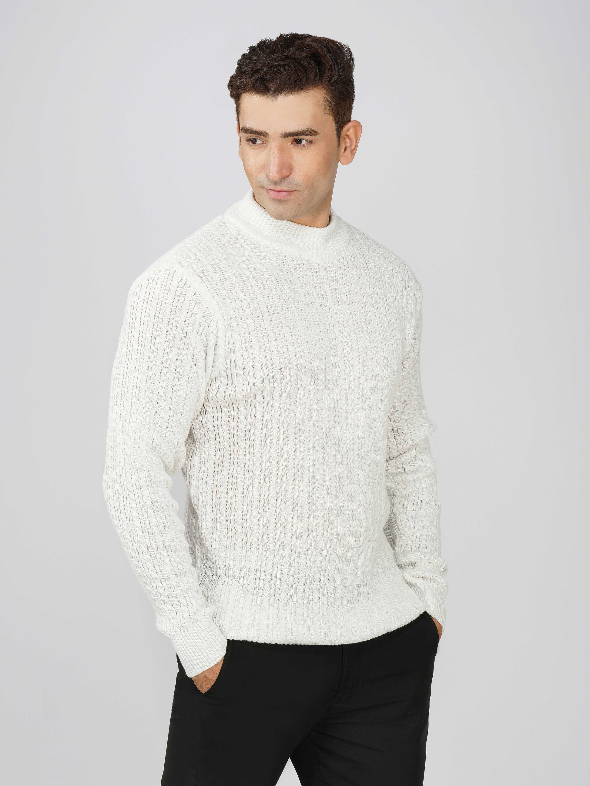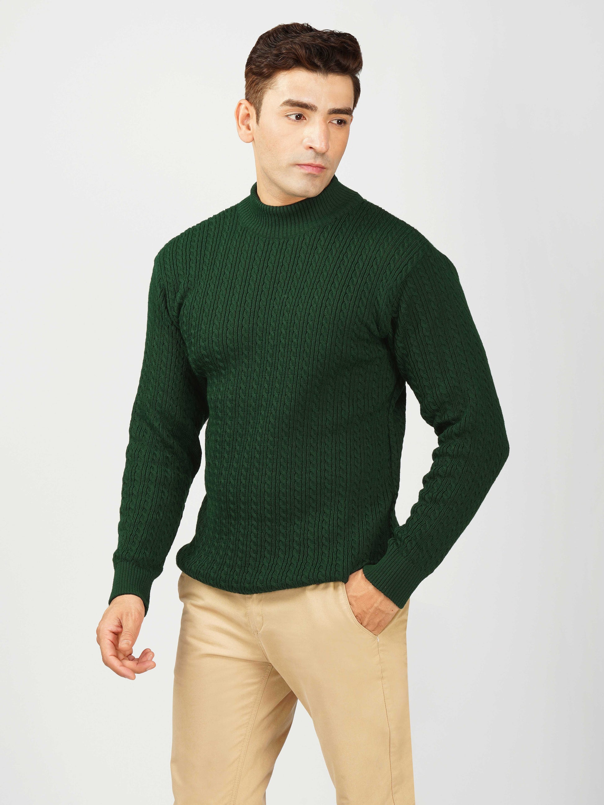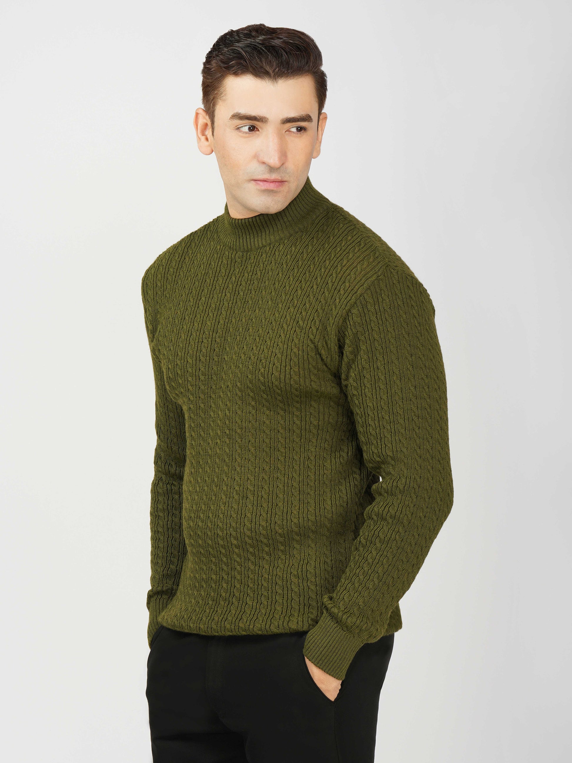 Upgrade your winter wardrobe with the Kvetoo Men’s Small Cable Knit High Neck Sweater. Crafted from premium-quality wool blend, this sweater features a classic small cable knit design and a stylish high neck to keep you warm and comfortable. Its slim-fit silhouette makes it perfect for layering over shirts or wearing solo for a refined look. Ideal for office wear, casual outings, and evening get-togethers, this versatile pullover combines elegance with practicality.