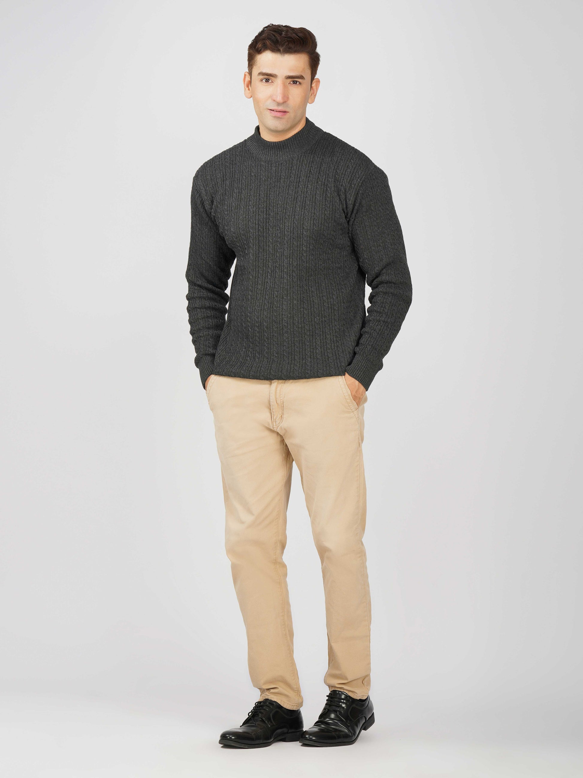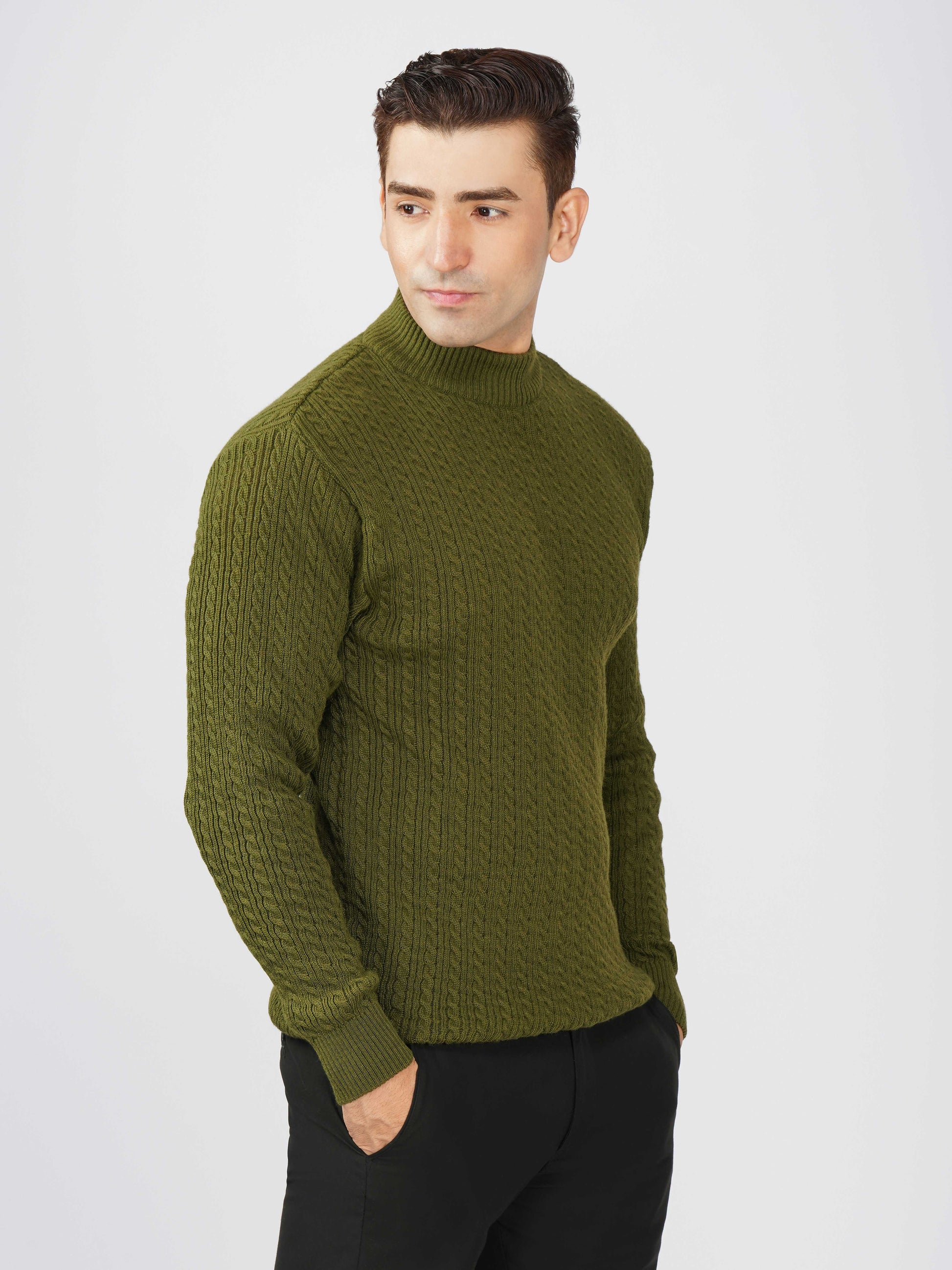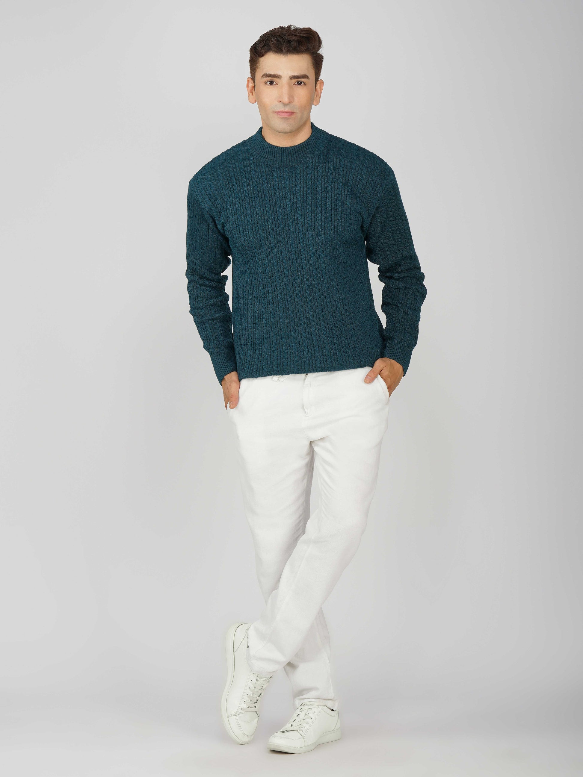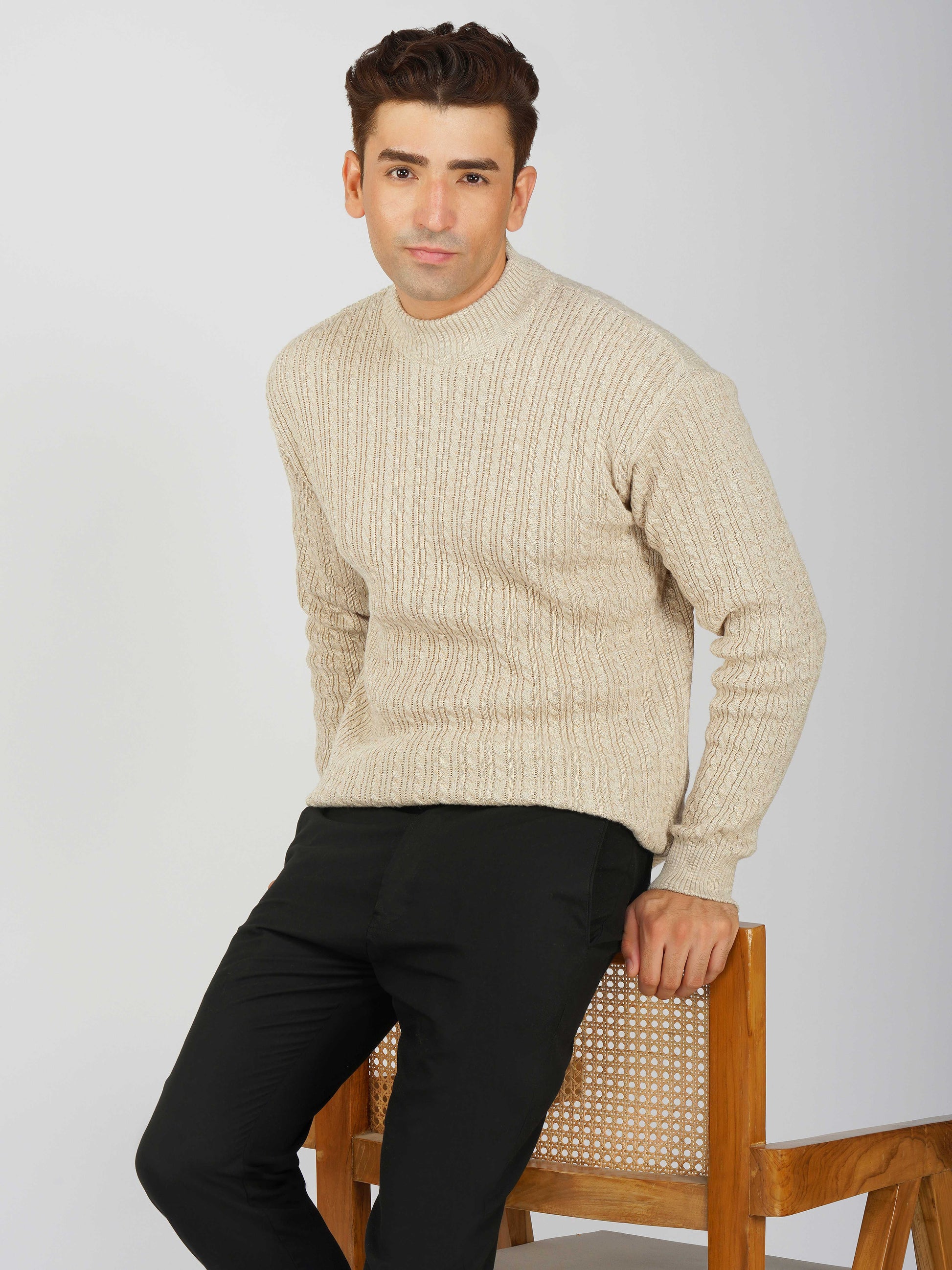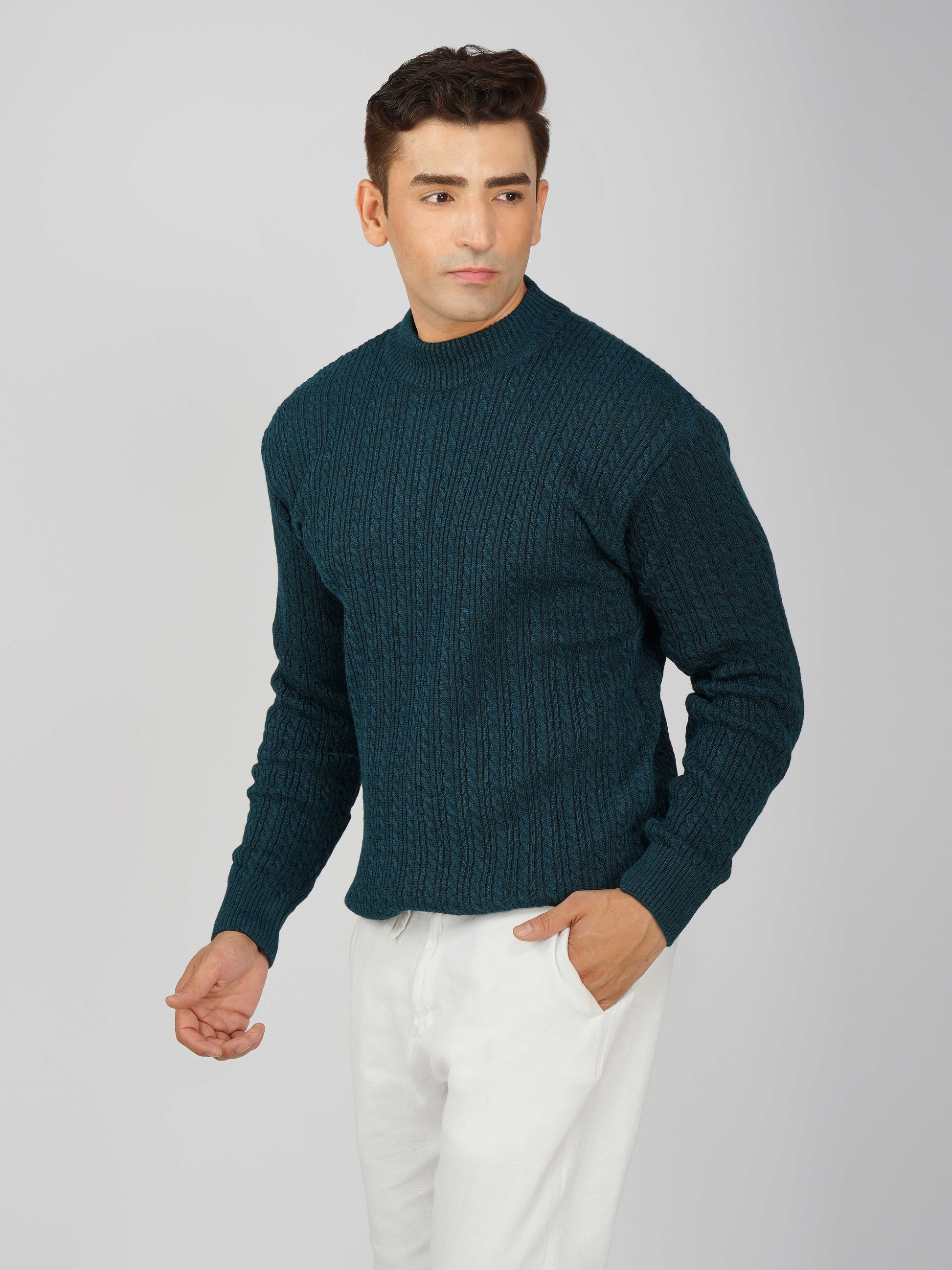 Upgrade your winter wardrobe with the Kvetoo Men’s Small Cable Knit High Neck Sweater. Crafted from premium-quality wool blend, this sweater features a classic small cable knit design and a stylish high neck to keep you warm and comfortable. Its slim-fit silhouette makes it perfect for layering over shirts or wearing solo for a refined look. Ideal for office wear, casual outings, and evening get-togethers, this versatile pullover combines elegance with practicality.