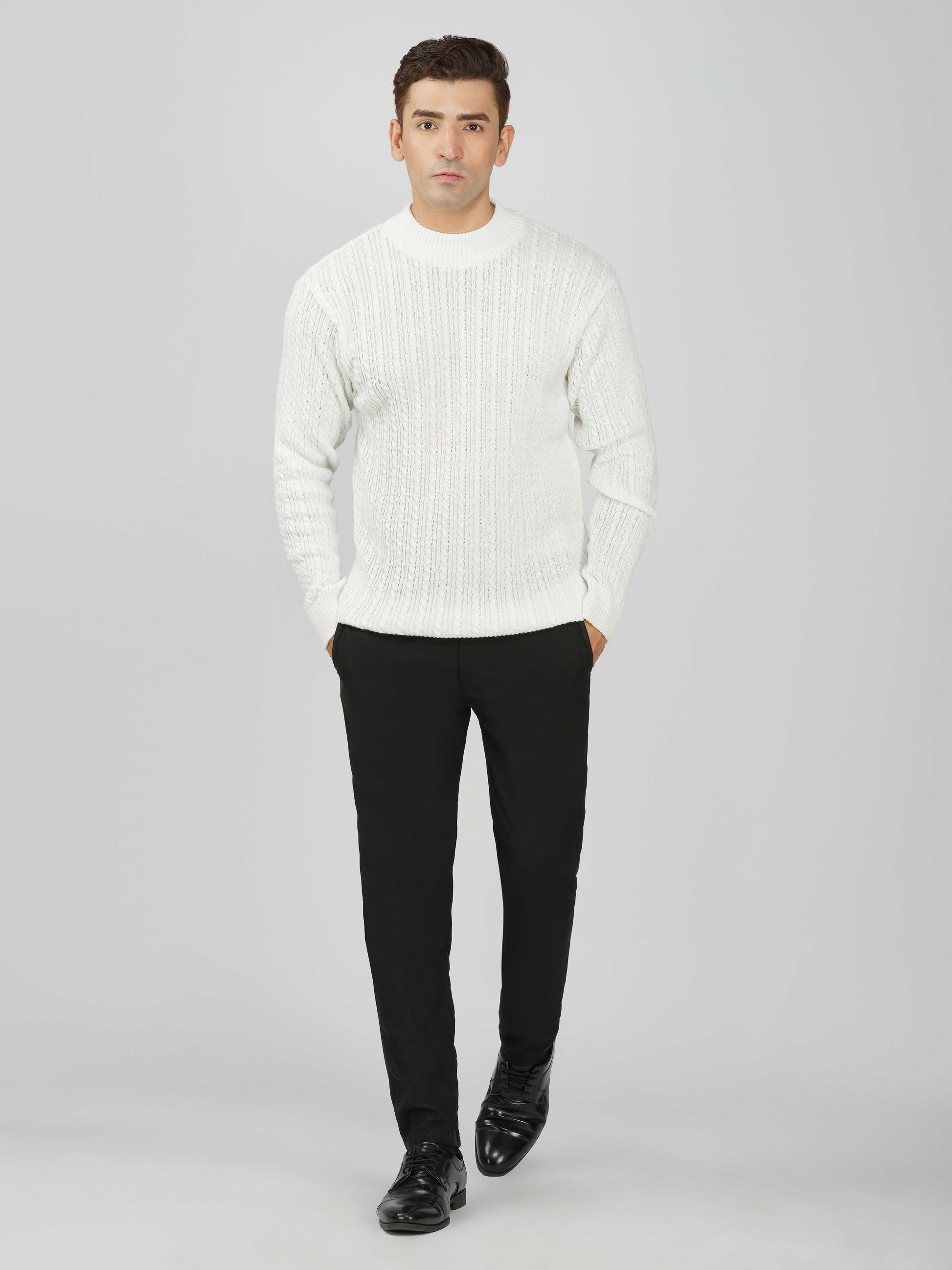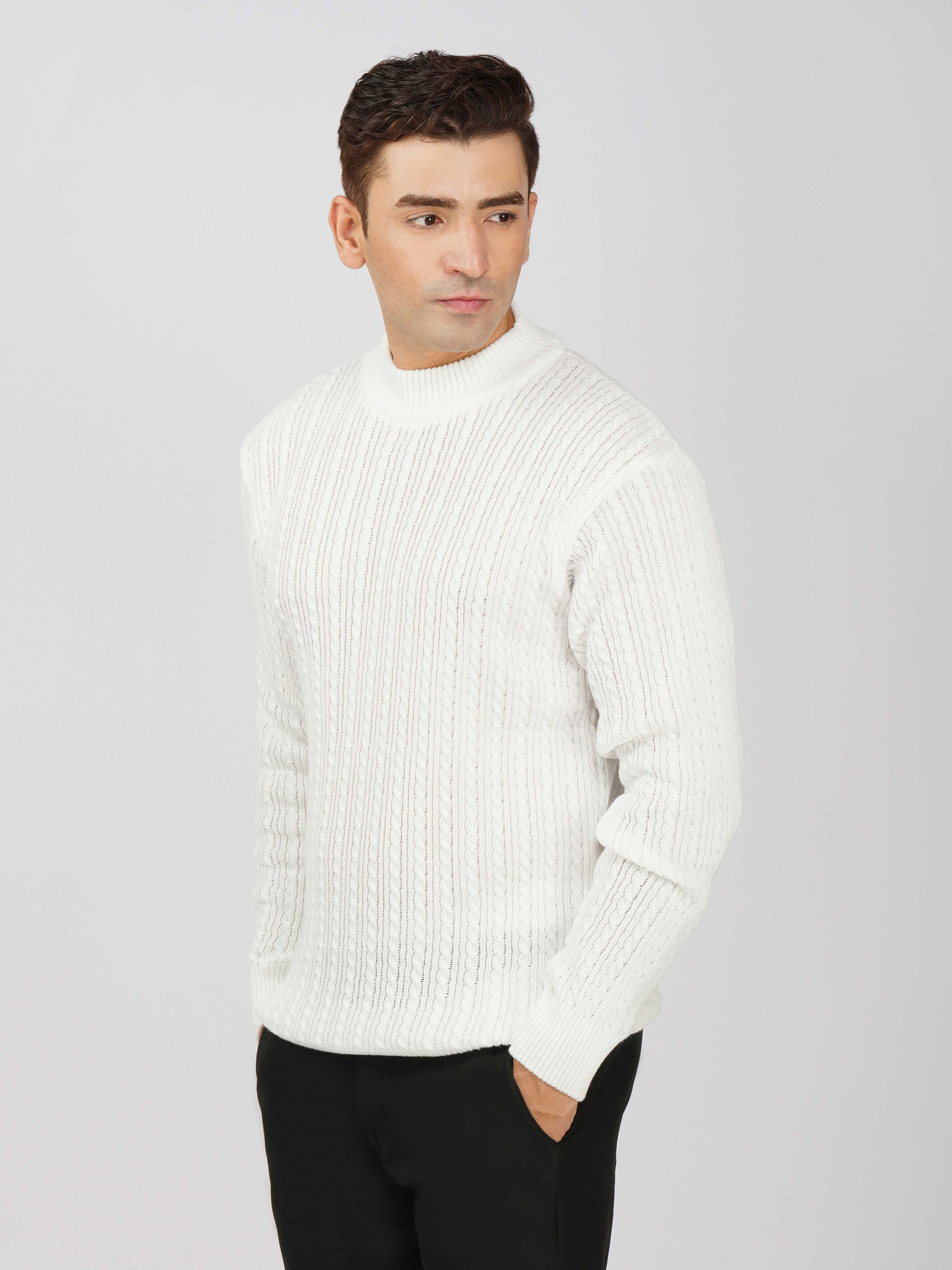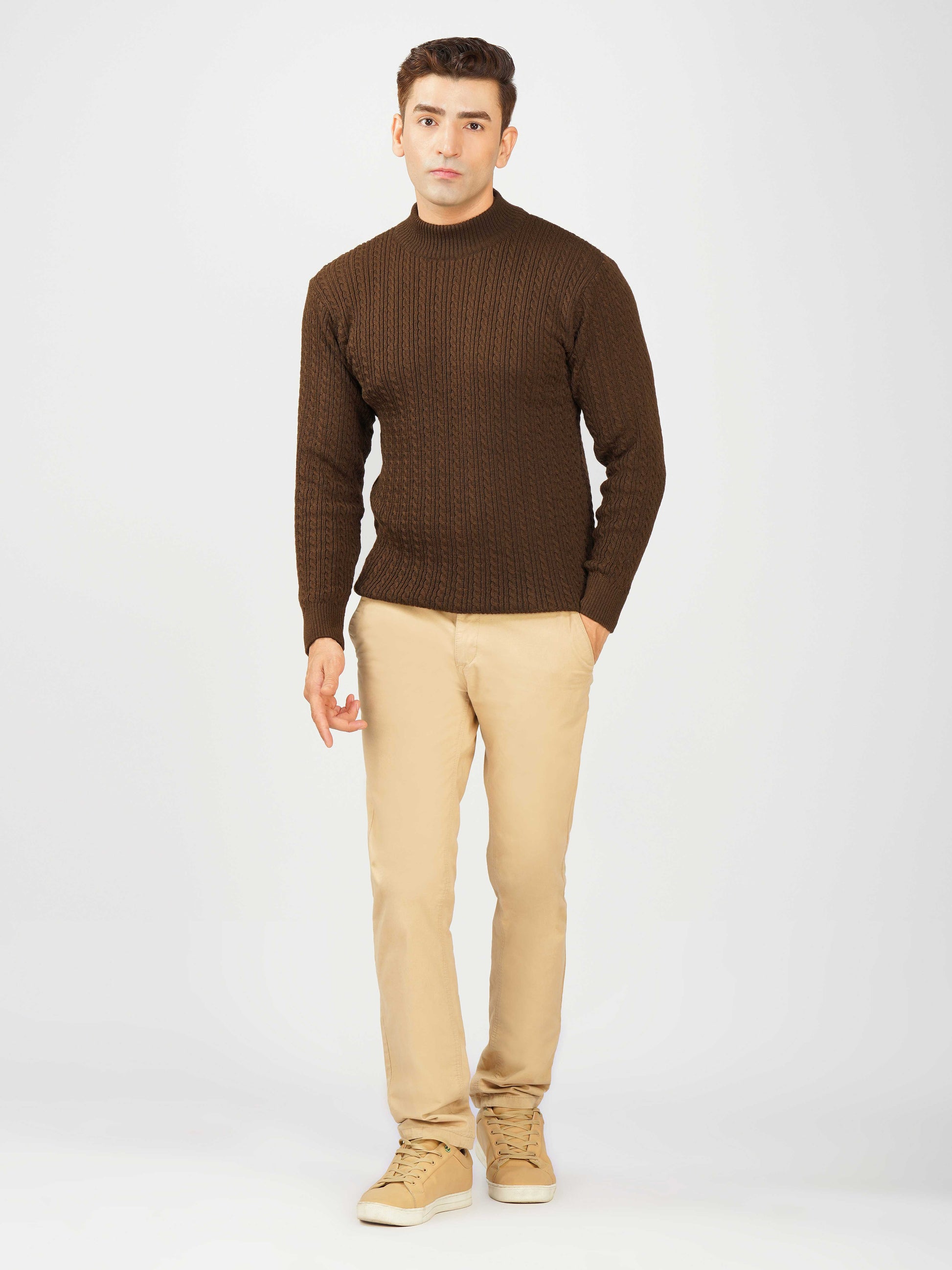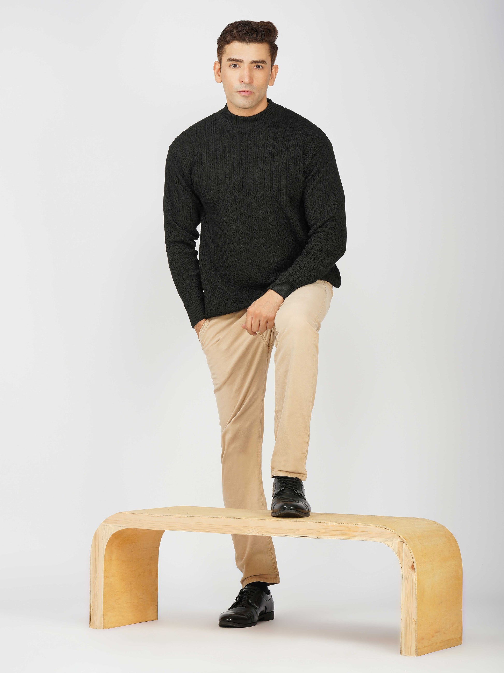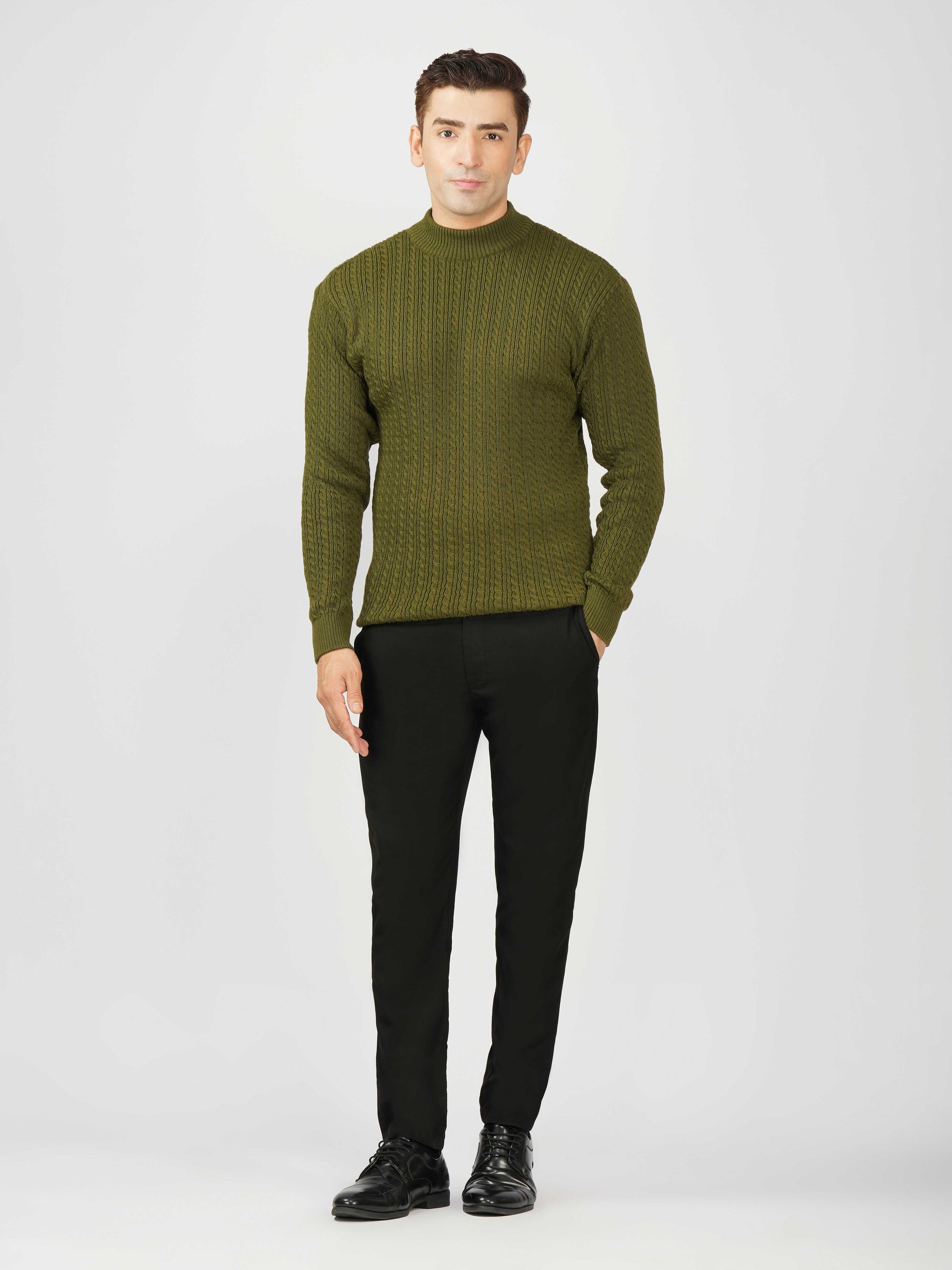 Upgrade your winter wardrobe with the Kvetoo Men’s Small Cable Knit High Neck Sweater. Crafted from premium-quality wool blend, this sweater features a classic small cable knit design and a stylish high neck to keep you warm and comfortable. Its slim-fit silhouette makes it perfect for layering over shirts or wearing solo for a refined look. Ideal for office wear, casual outings, and evening get-togethers, this versatile pullover combines elegance with practicality.