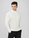Kvetoo Men’s Small Cable Knit High Neck Sweater – Winter Warm Slim Fit Pullover