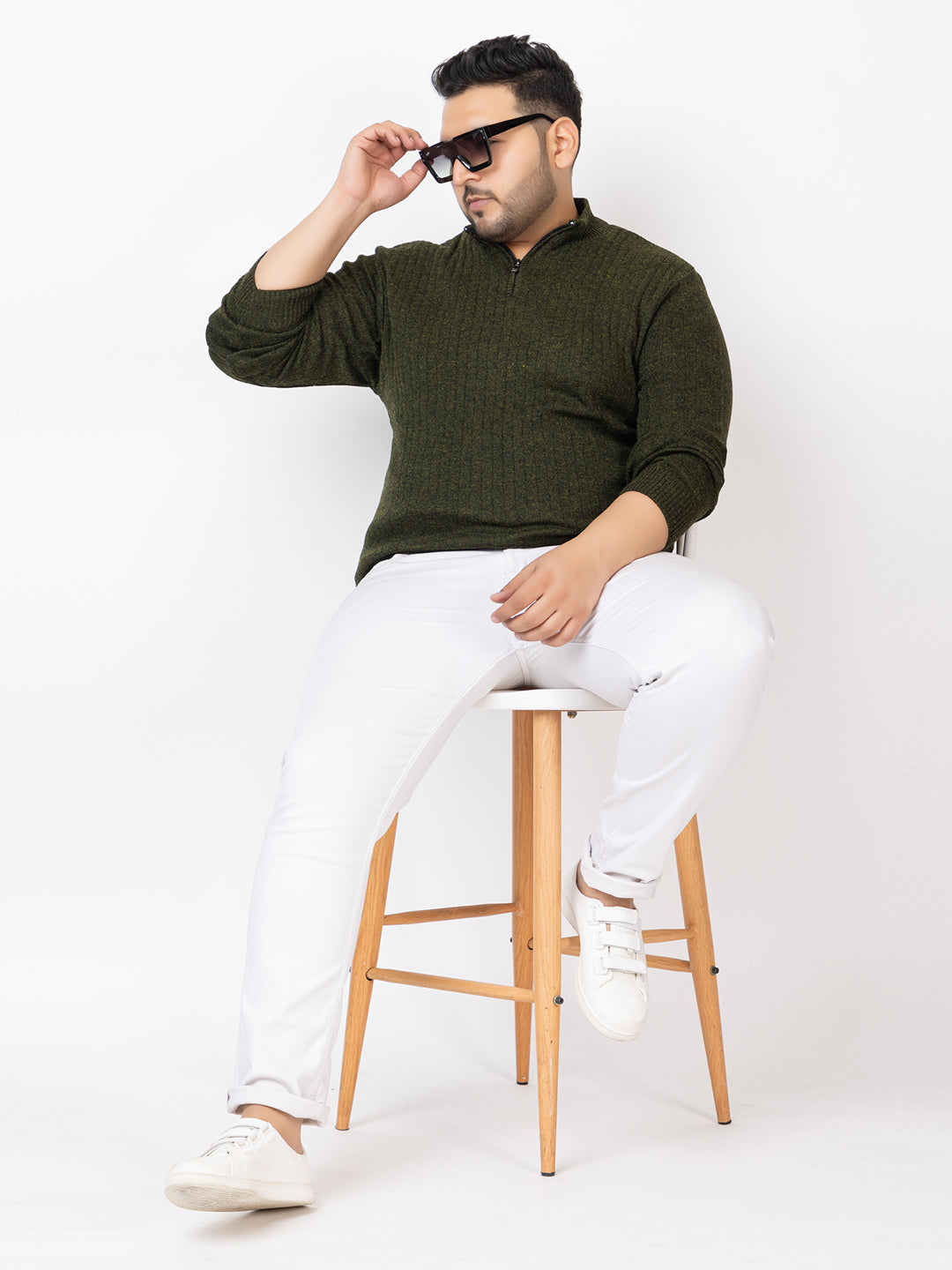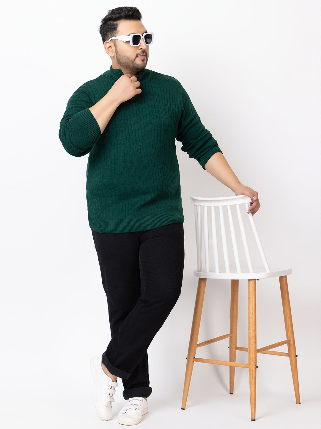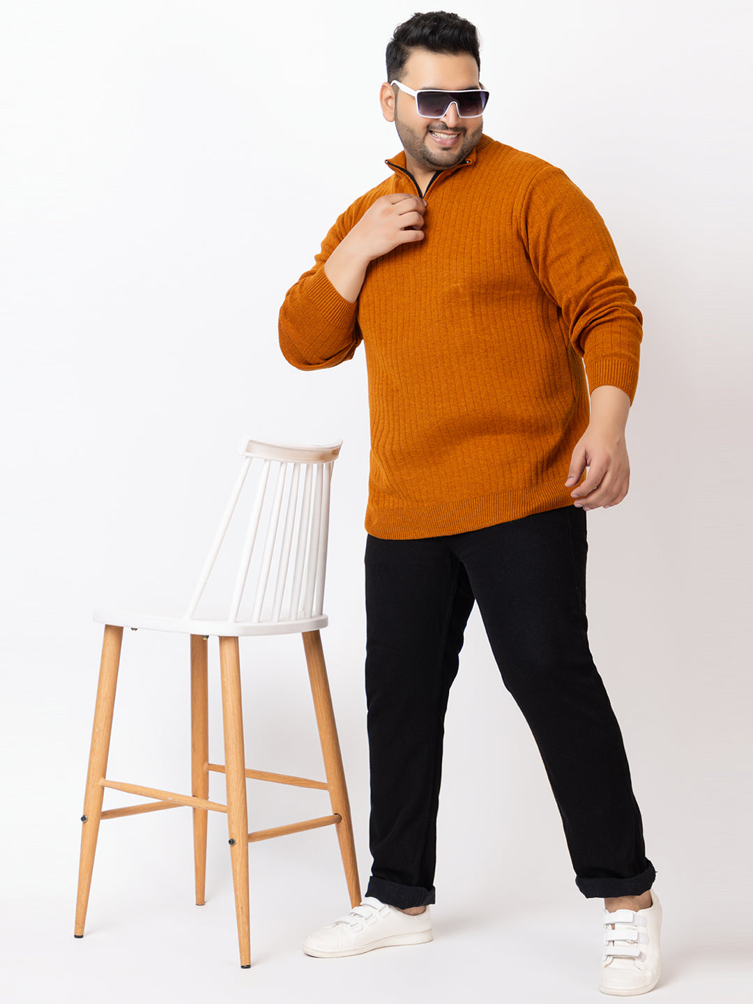 Kvetoo Plus Size Men’s Quarter Zip High Neck Sweater – Cozy Knit Pullover for Winter Wear
