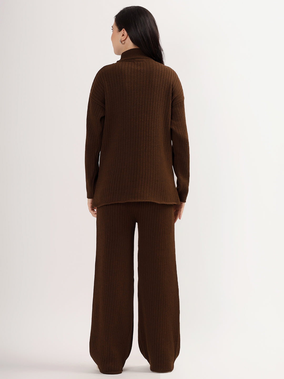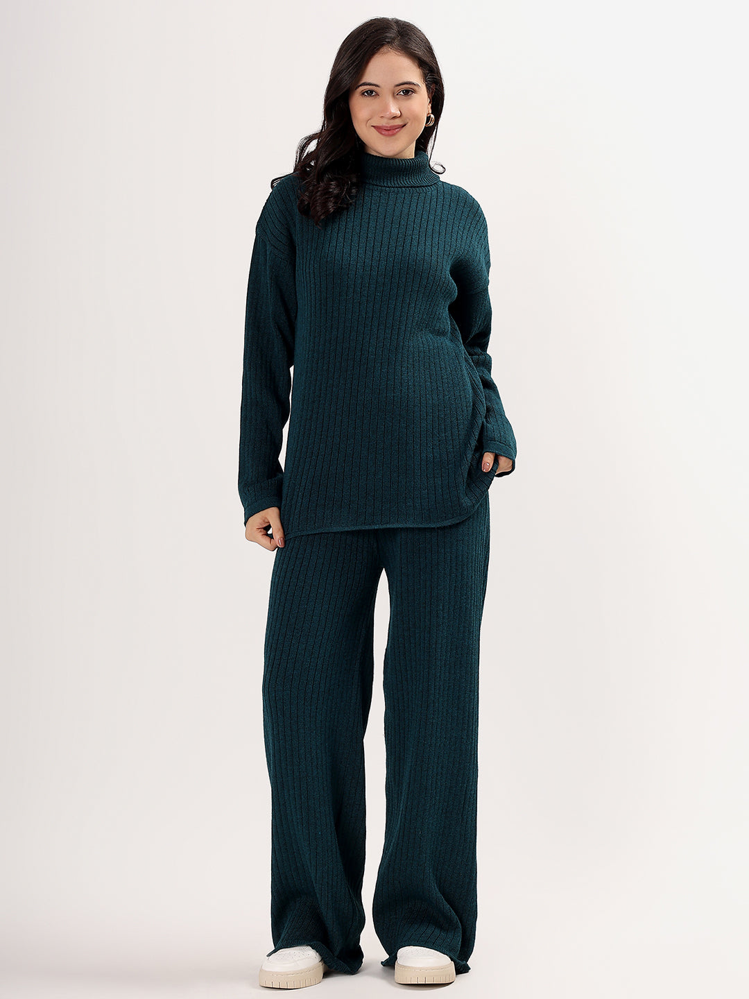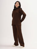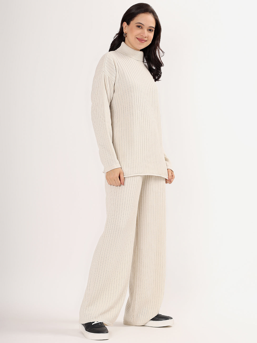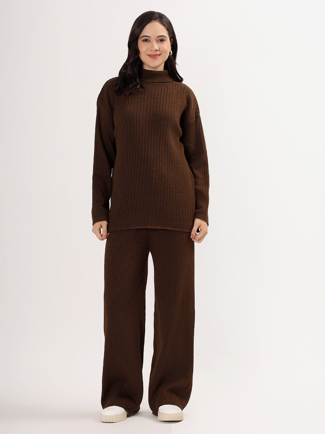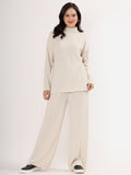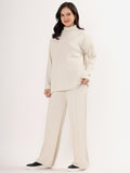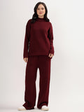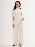 Kvetoo Women Woollen Co-ord Set – High Neck Ribbed Knit Sweater & Wide Leg Pants | Winter Warm Knitwear