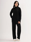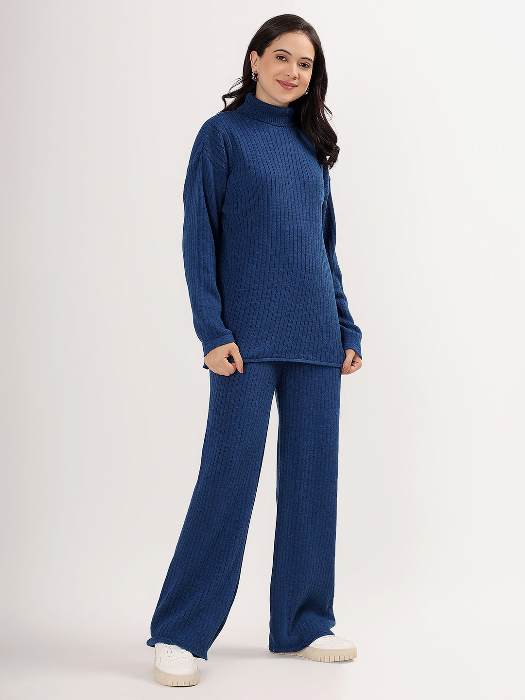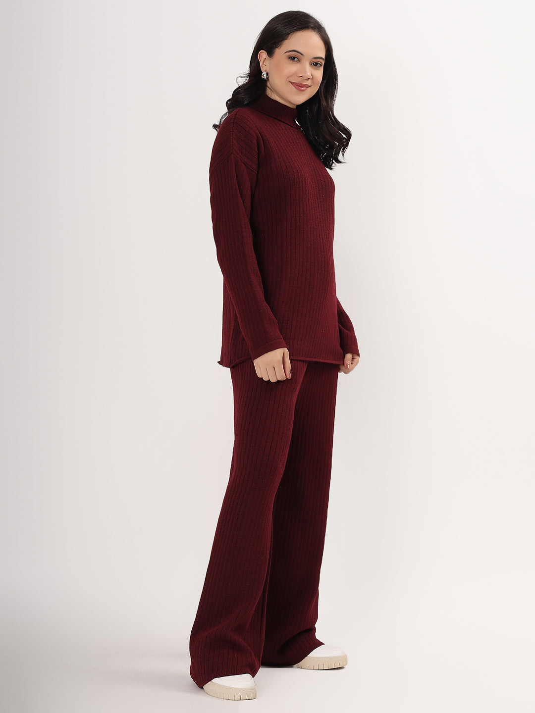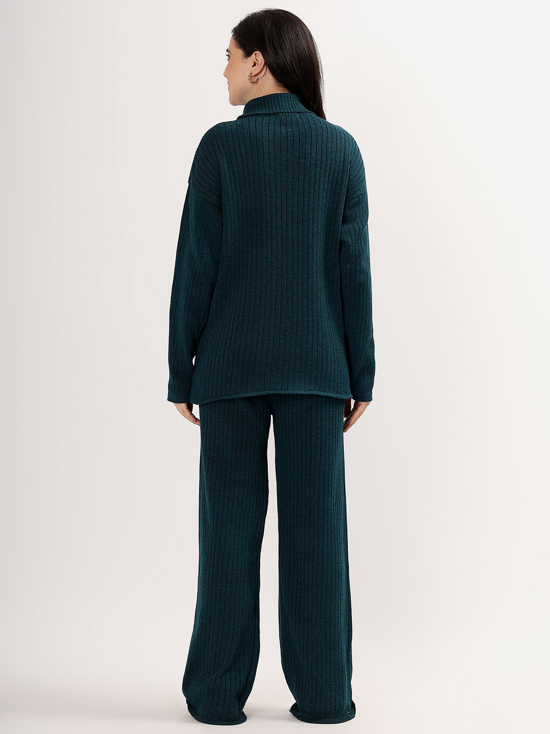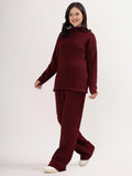 Kvetoo Women Woollen Co-ord Set – High Neck Ribbed Knit Sweater & Wide Leg Pants | Winter Warm Knitwear