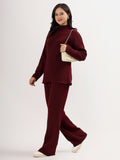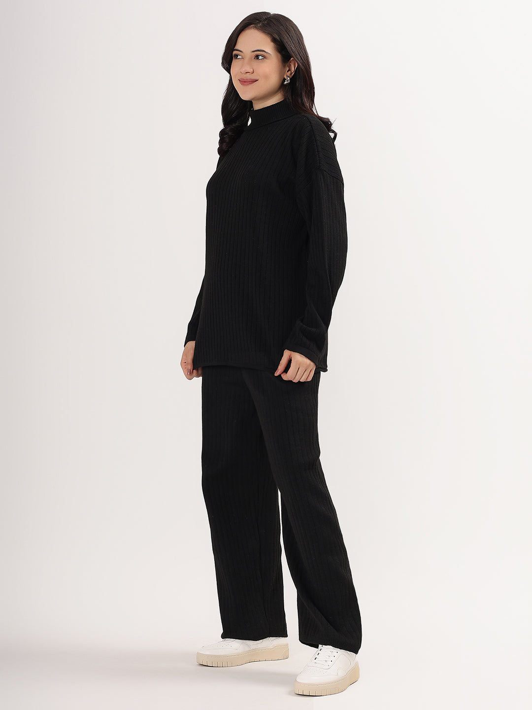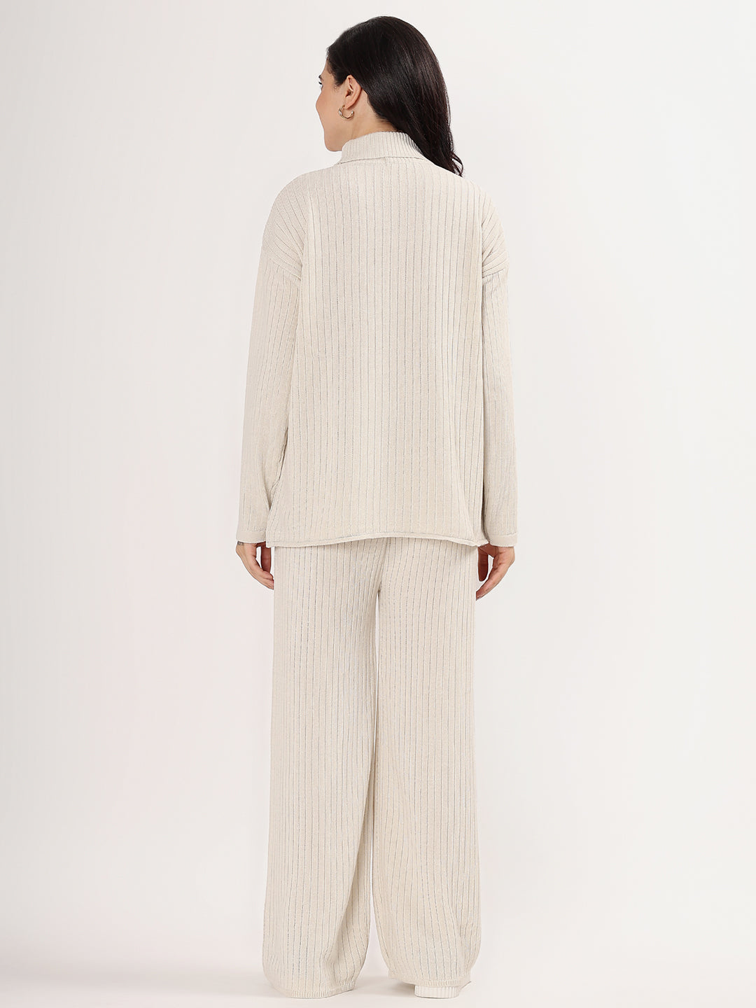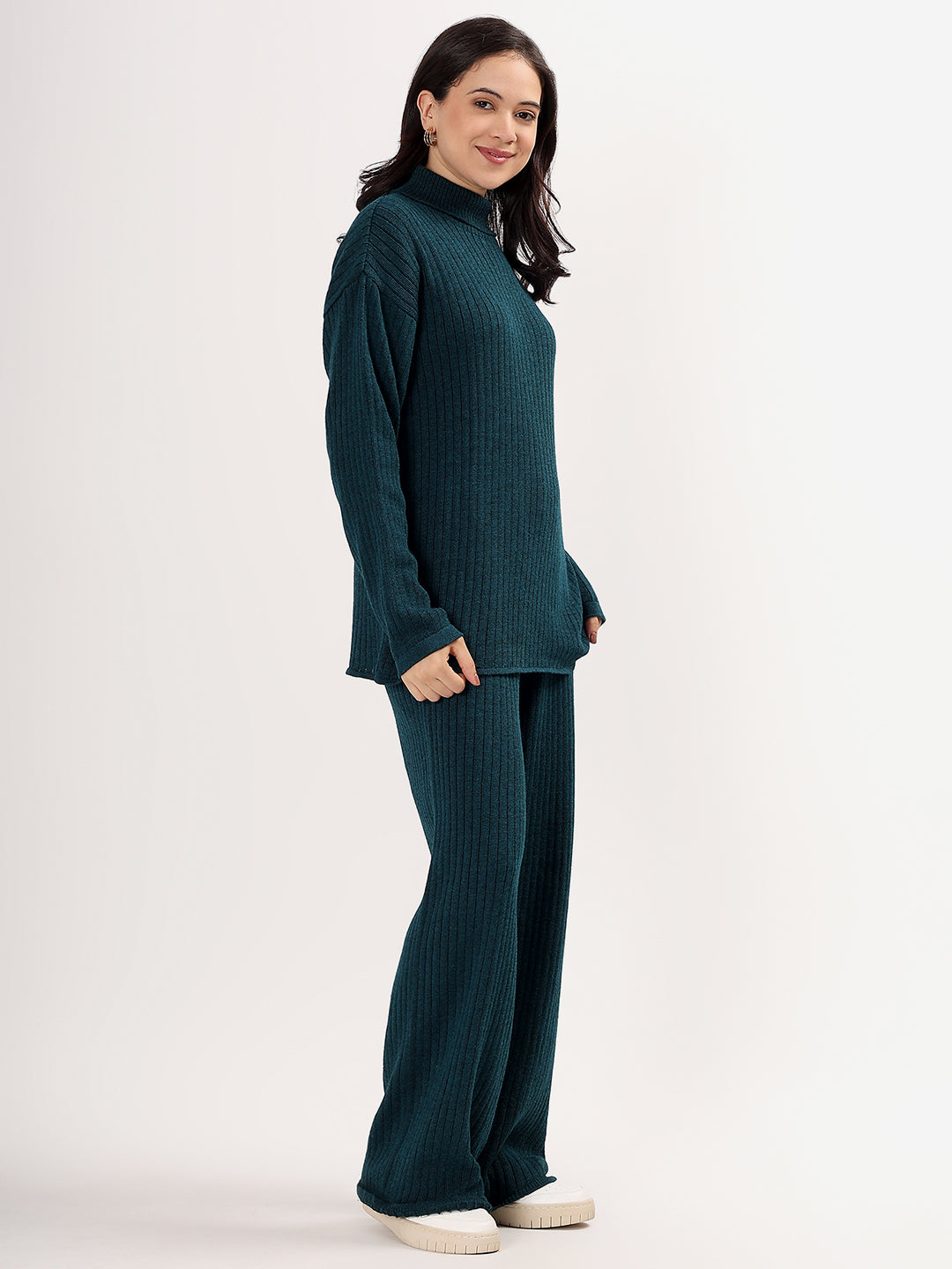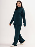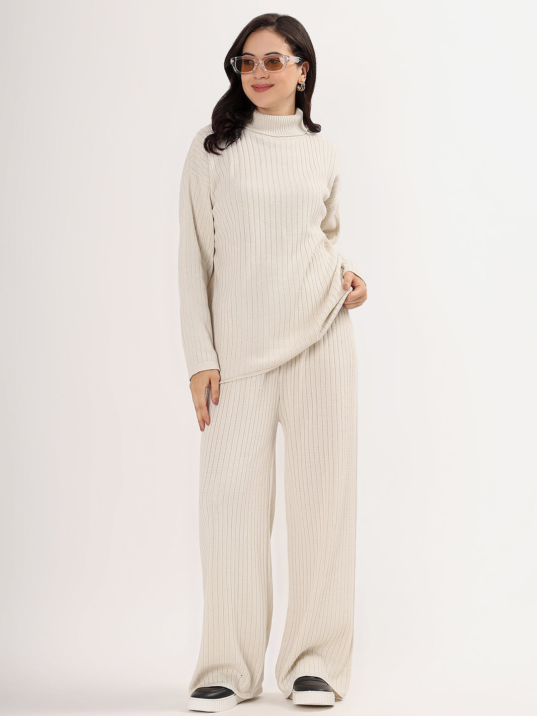 Kvetoo Women Woollen Co-ord Set – High Neck Ribbed Knit Sweater & Wide Leg Pants | Winter Warm Knitwear