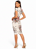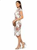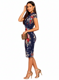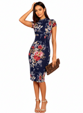 Experience effortless elegance with this knee-length bodycon dress featuring a sophisticated round high neckline. Designed in a luxurious lycra-cotton blend, the fabric delivers superior stretch and breathability for all-day comfort. The eye-catching multi colour floral print brings vibrancy to your collection, while the form-fitting silhouette flatters your natural curves. Available across a spectrum of colour variations, you'll find the perfect shade to match your personal style. The versatile design pairs beautifully with both structured purses and casual sling bags, making it an ideal choice for various occasions. A wardrobe essential that combines contemporary design with practical comfort.