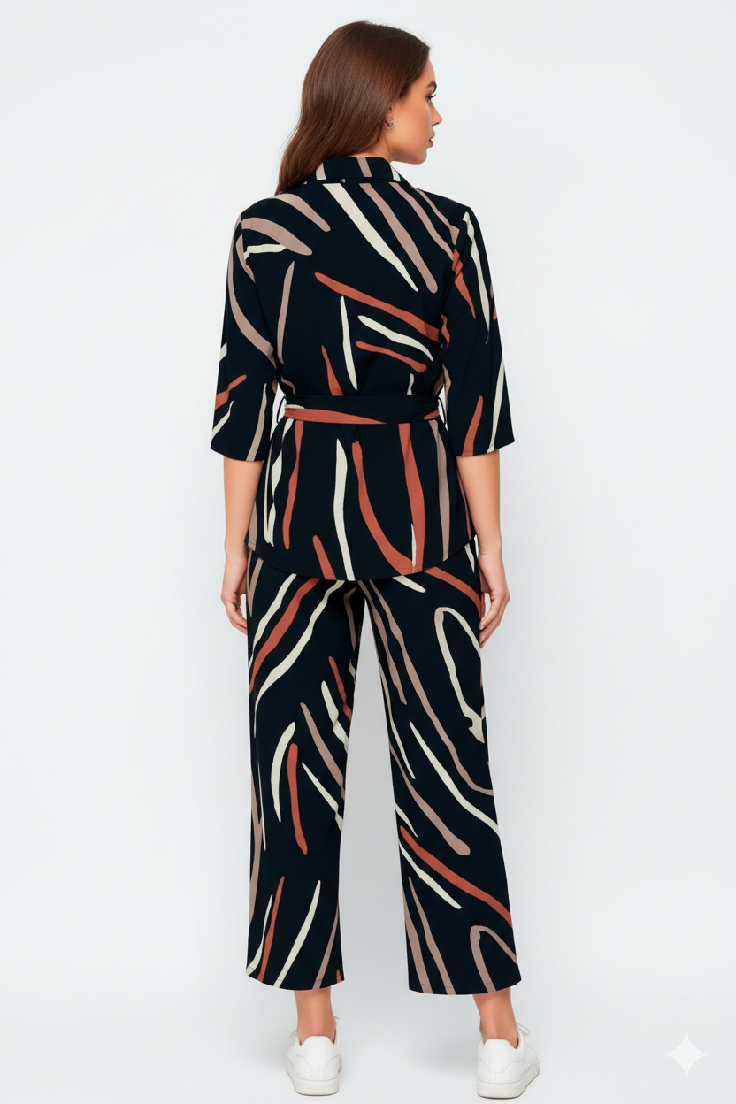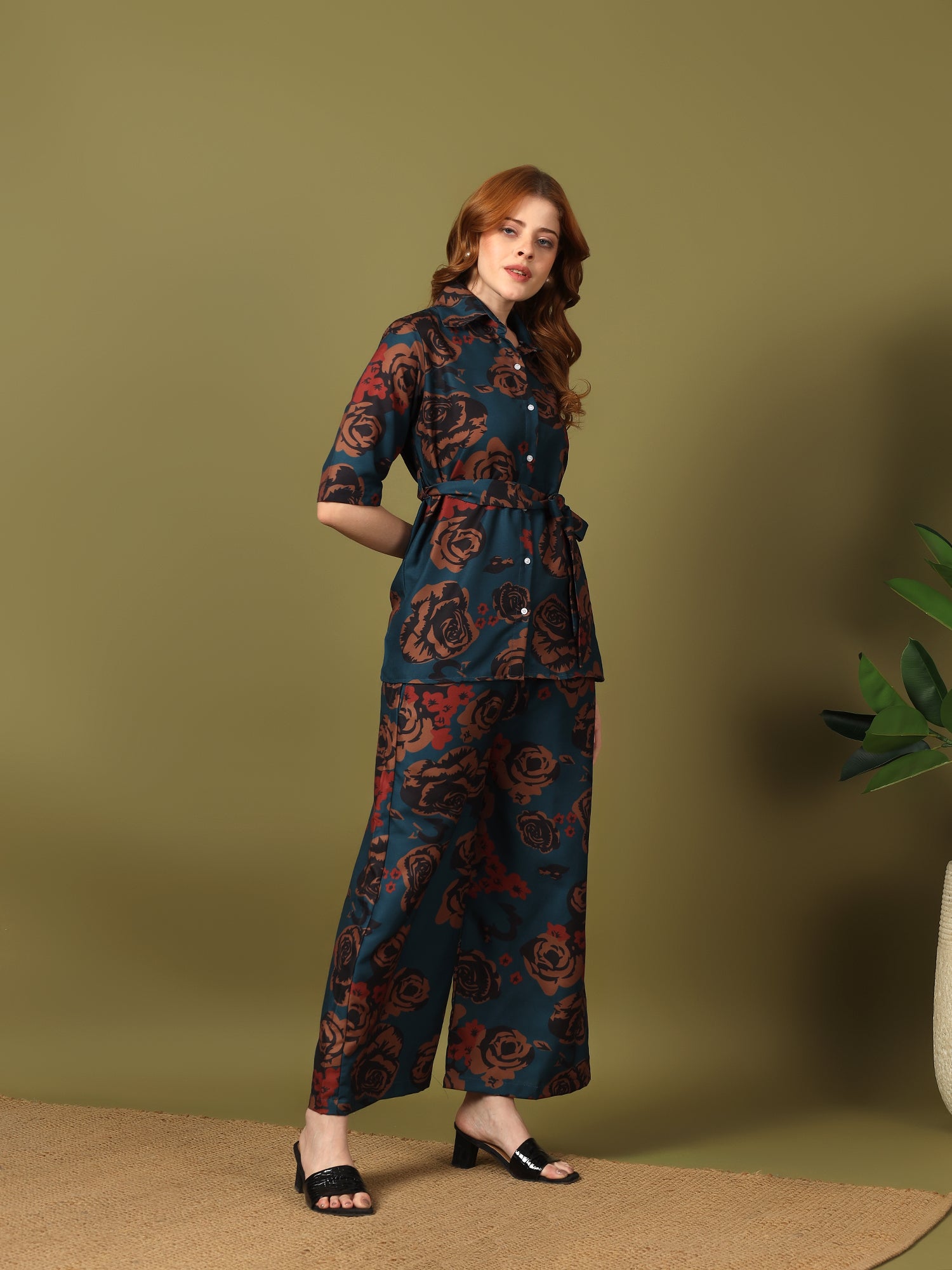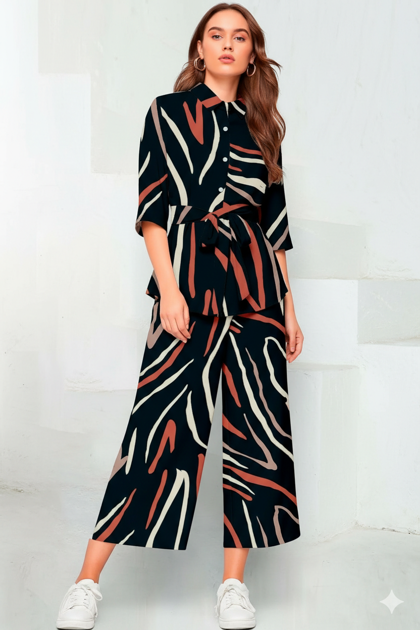 Elevate your summer wardrobe with this sophisticated co-ord set designed for effortless style. Featuring a collared shirt with delicate flower prints and quarter sleeves, paired with full-length Korean-style pants, this ensemble offers versatility for any occasion. The front button opening and waist belt create a flattering silhouette, while the soft, breathable fabric ensures comfort throughout warm days. Available in four stunning color options, this set seamlessly transitions from casual outings to semi-formal gatherings, making it an essential addition to your seasonal collection.