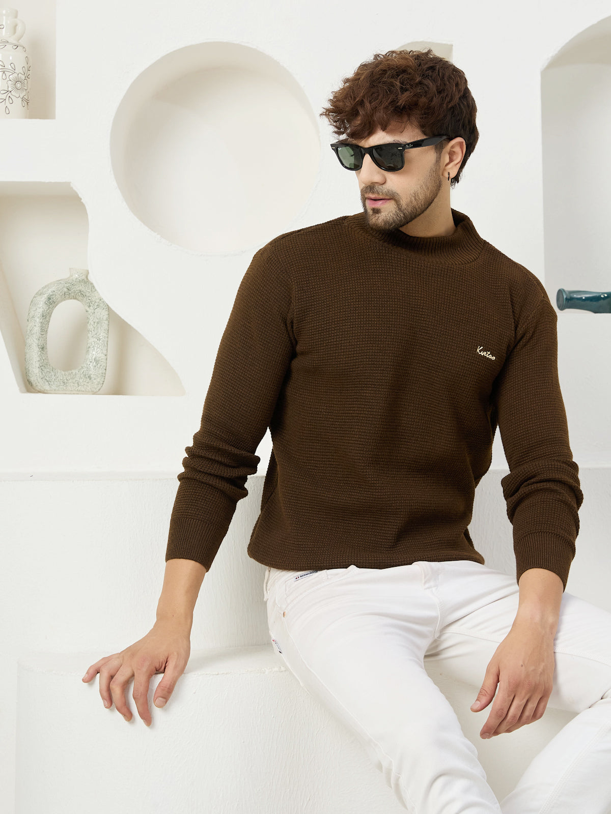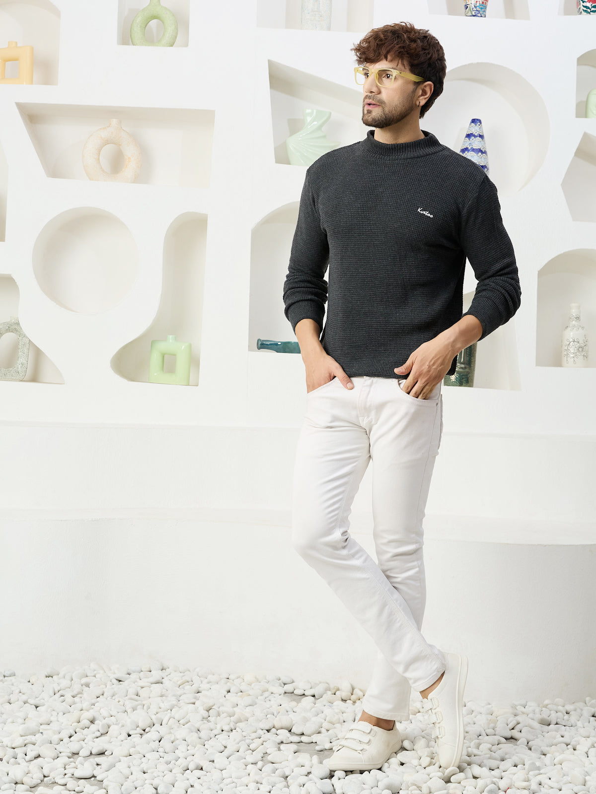 Stay cozy and look sharp with our Men’s High Neck Self-Knitted Sweater – designed for comfort, crafted for style. Made from premium-quality self-knitted fabric, this sweater provides a soft feel, excellent insulation, and a perfect fit for winter layering.